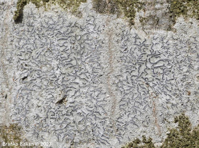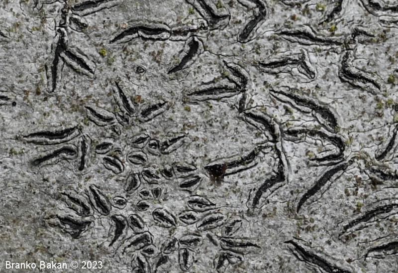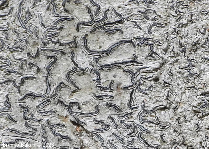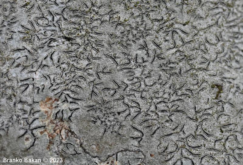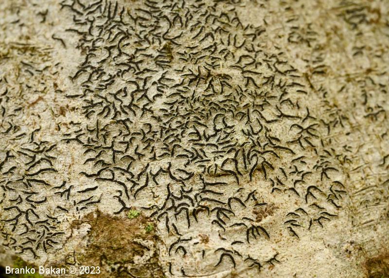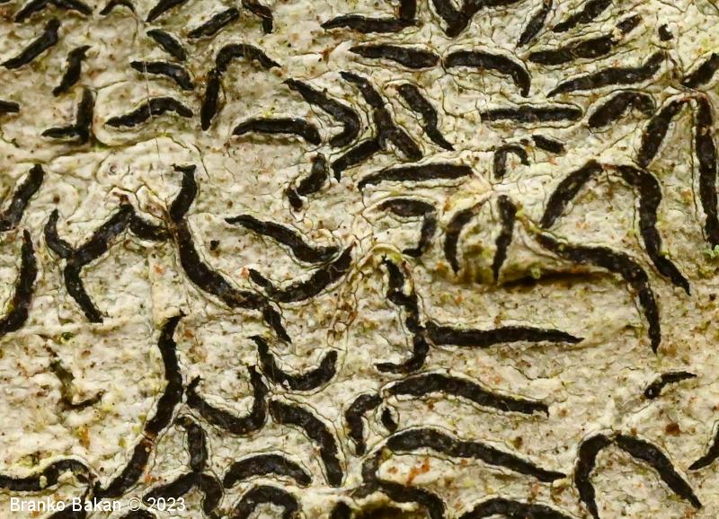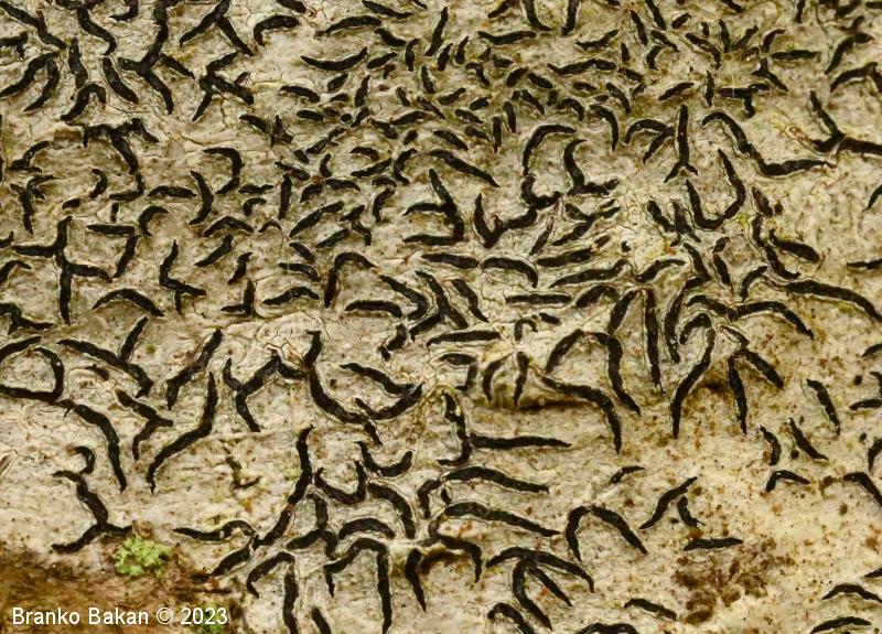 Podobne vrste: elegantni pisemski lišaj (Graphis elegans) - črni hieroglifar (Opegrapha atra) - vrste iz rodu Graphina.