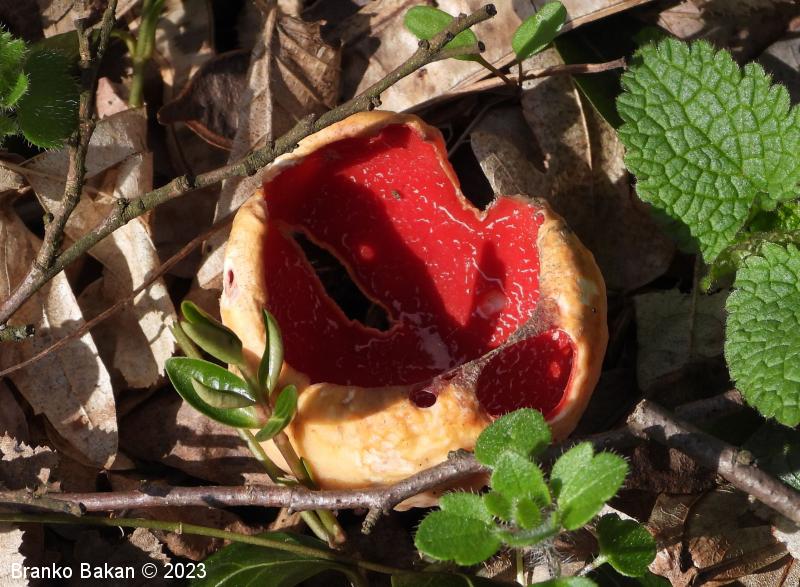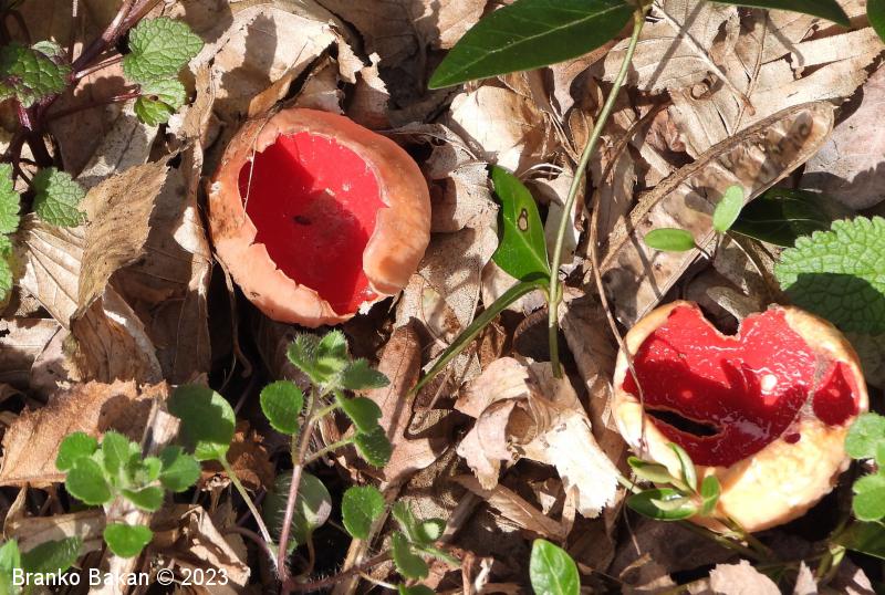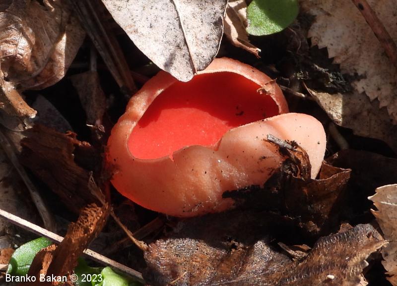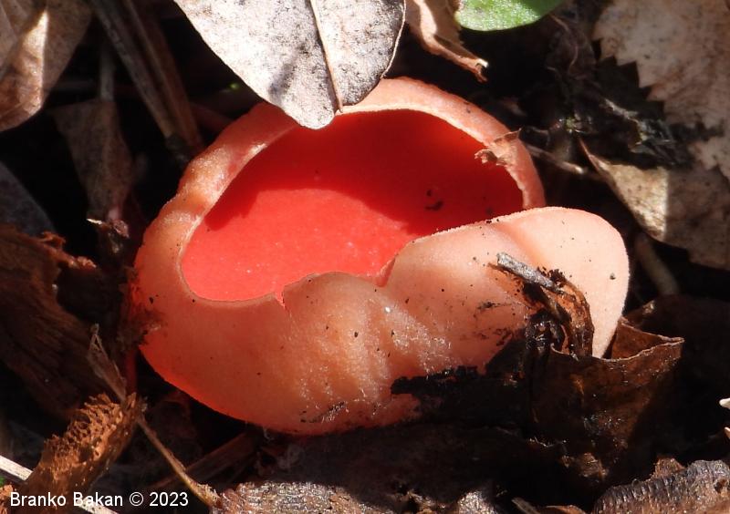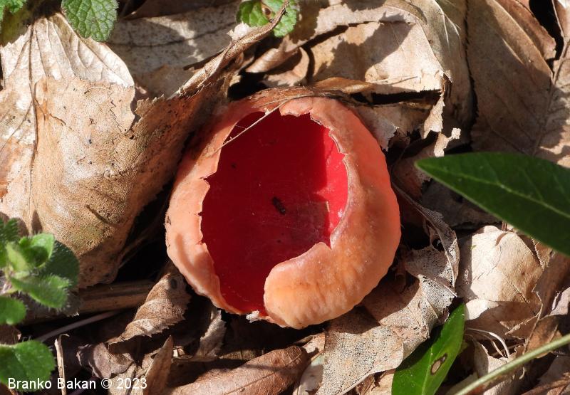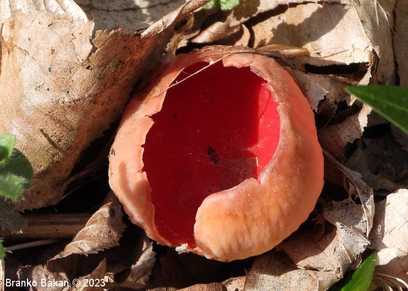 Podobne vrste: škrlatna čašica (Sarcoscypha coccinea) - oranžna latvica (Aleuria aurantia).