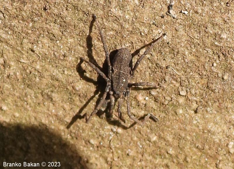 Odrasli osebki: telo je hrbtno-trebušno sploščeno, meja med glavoprsjem (prosoma) in zadkom (opistosoma) je nejasna. Glavoprsje z zgornje strani prekriva dvodelna, listasta kapuca, ki je prečno povezana s ščetinami, na bazi katere se nahajajo drobne, zbližane oči. Helicere so "skrite" pod kapuco s spodnje strani. Zadkov ščit je podolgasto kapljičast, hrapav, sivorjav, večinoma z rahlim, osrednjim grebenom, pogosto prekrit z drobnim materialom (drobci zemlje in zrnca peska). Noge so krepkejše in krajše kot pri ostalih suhih južinah, bolj spominjajo na noge pajkov. Prvi par nog uporabljajo kot "antene", drugi par nog je mnogo daljši in enako dolg kot zadnji par nog. Členki stopalc so temni.