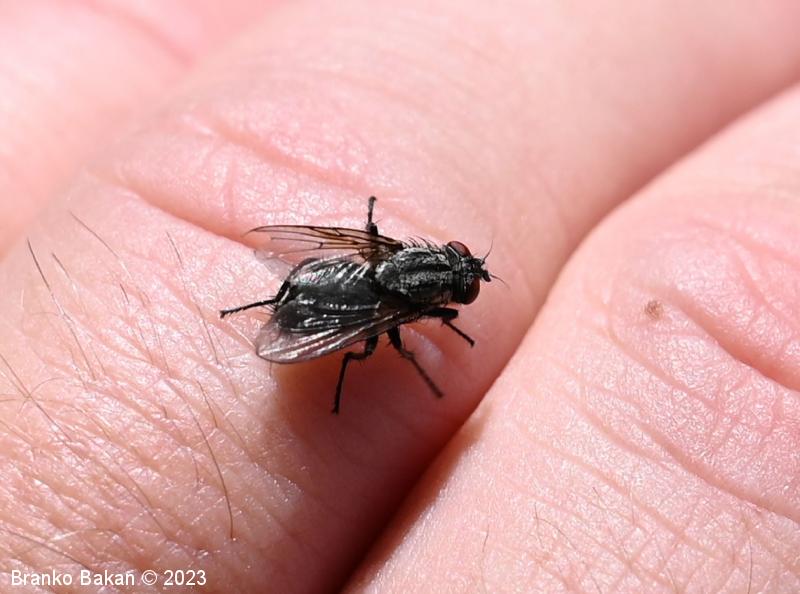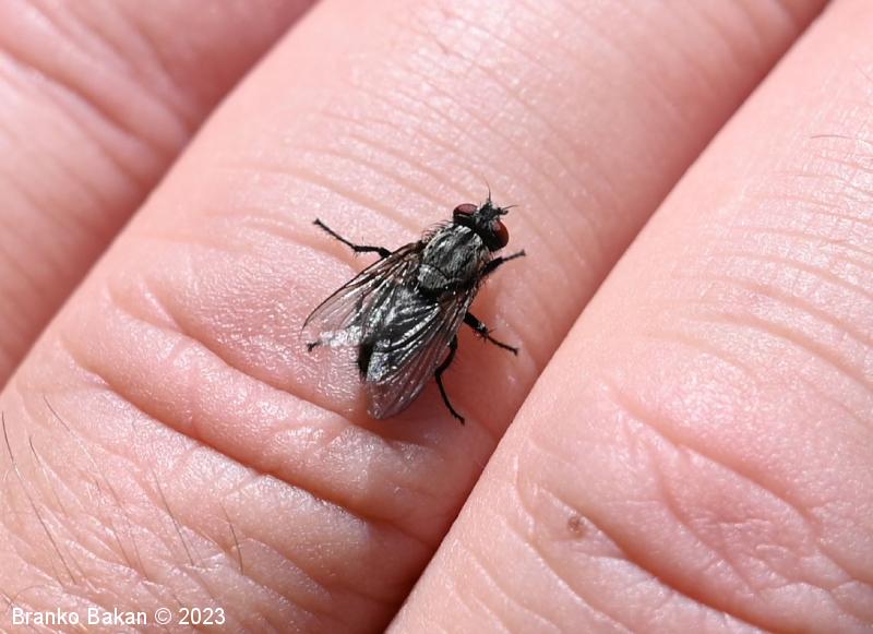 Podobne vrste (*neuveljavljeno ime): kratkotipalčna lažna mesarka* (Eurychaeta palpalis) - mesarske muhe (Sarcophaga spp.).