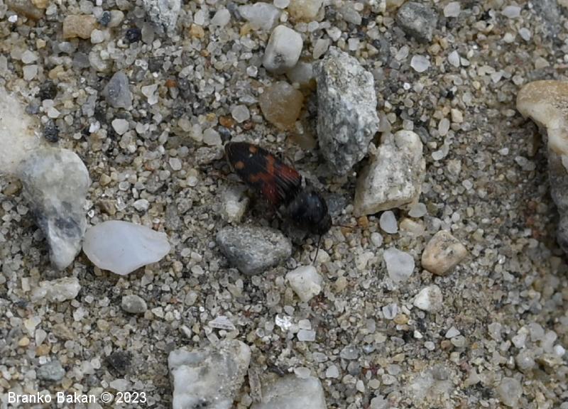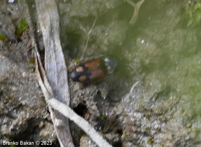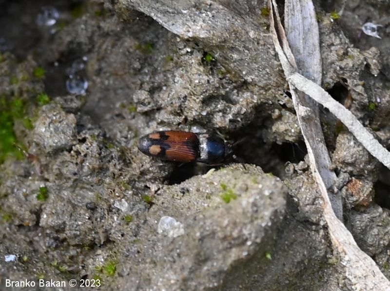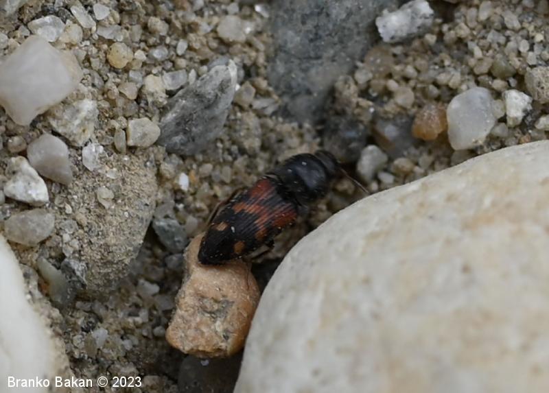 Obnašanje in razvoj: odrasli se pojavljajo od zgodnje pomladi vse do sredine jeseni. Ličinke živijo v peščenih tleh ter razpadajočem rastlinskem materialu, posebej na obrežjih stoječih voda. Tudi odrasli se pogosto zadržujejo na podobnih mestih, pogosto tekajo naokrog.