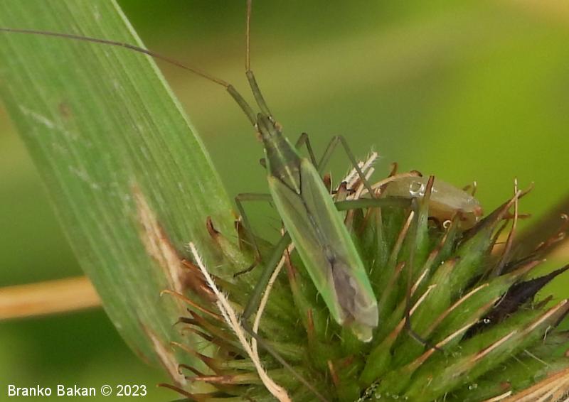 Podobne vrste (*neuveljavljeno ime): podolgasta travniška stenica* (Notostira elongata) - gladka travniška stenica* (Stenodema laevigata) - travniška stenica* (Trigonotylus spp.).