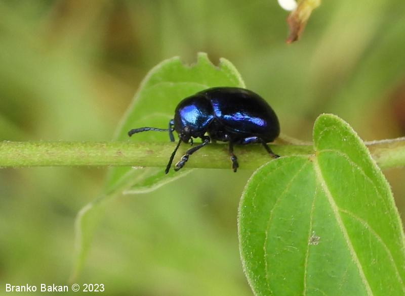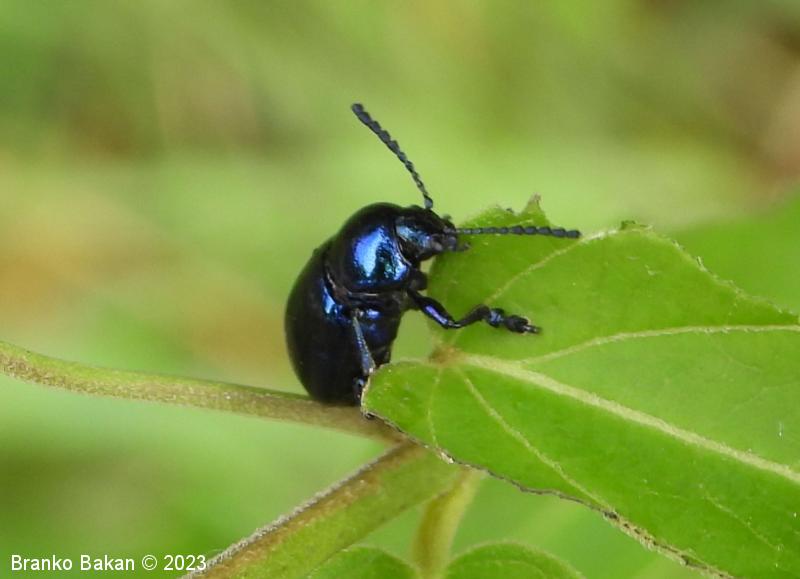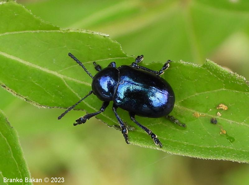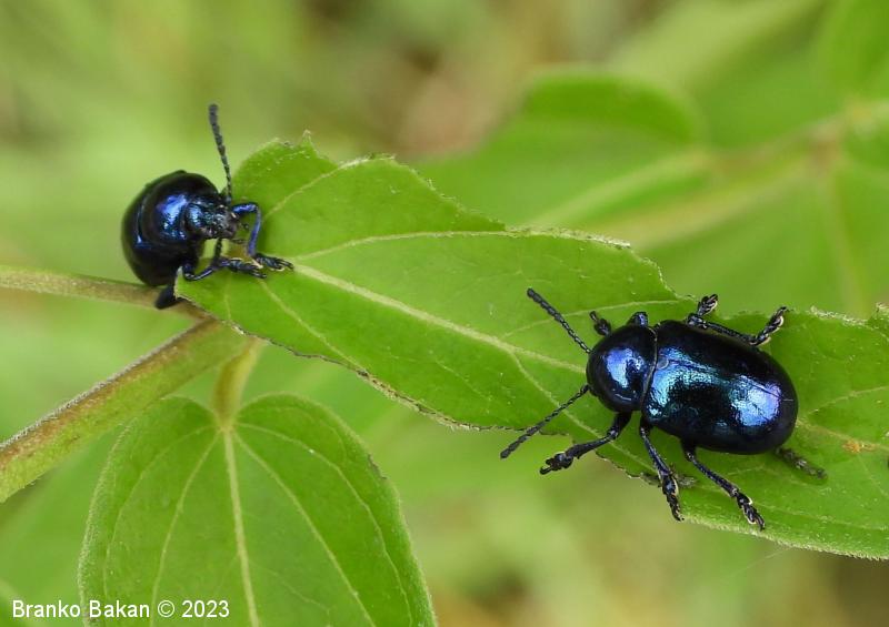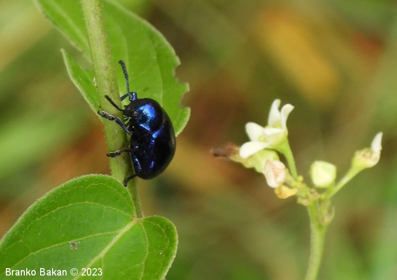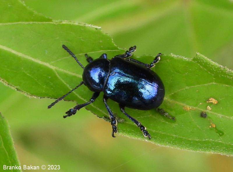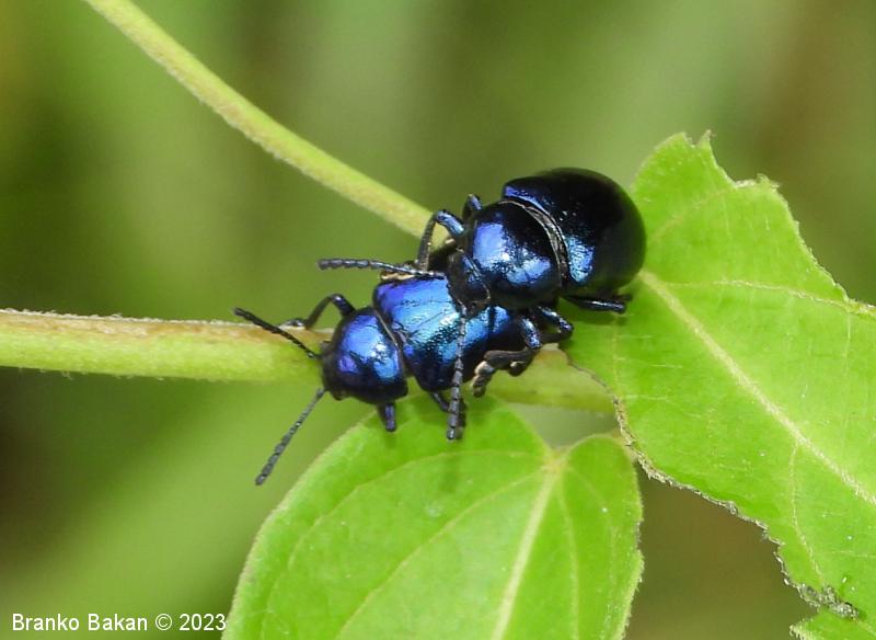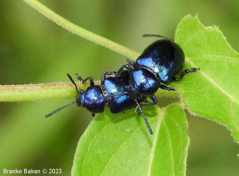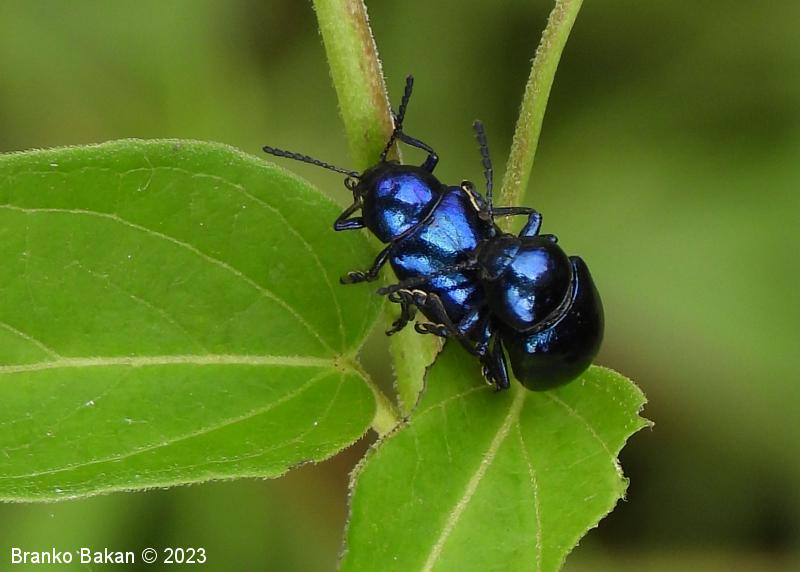 Modri kokoščevčev lepenec* (Eumolpus asclepiadeus / Chrysochus asclepiadeus )