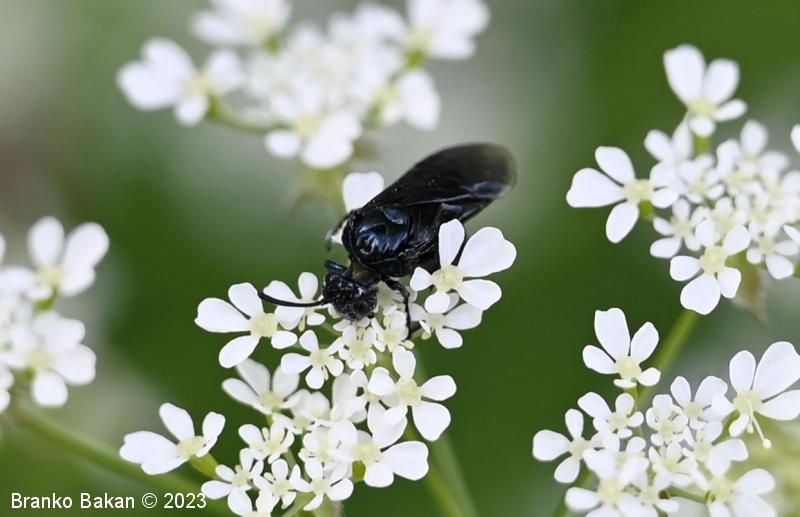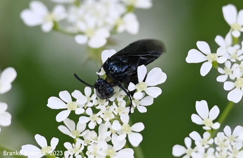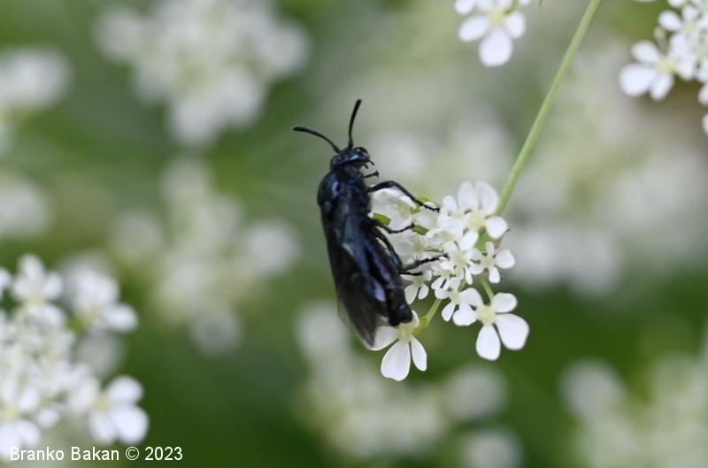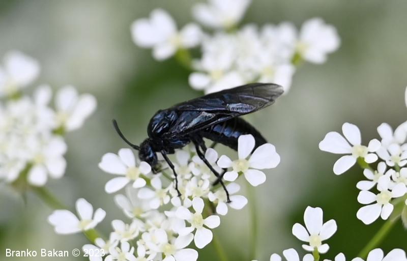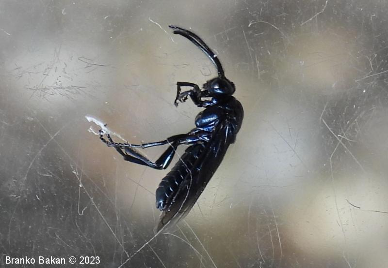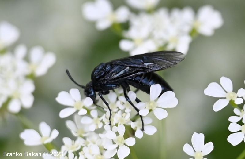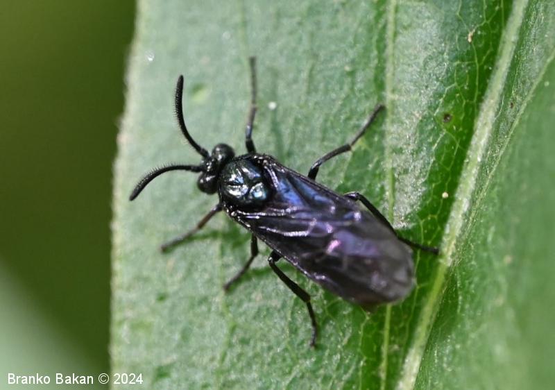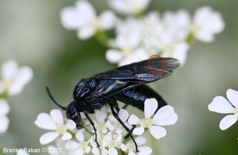 Podobne vrste (*neuveljavljeno ime): črnonoga ščetinorožka* (Arge nigripes) - češminova ščetinorožka* (Arge berberidis) - puhastokrila ščetinorožka* (Arge gracilicornis).