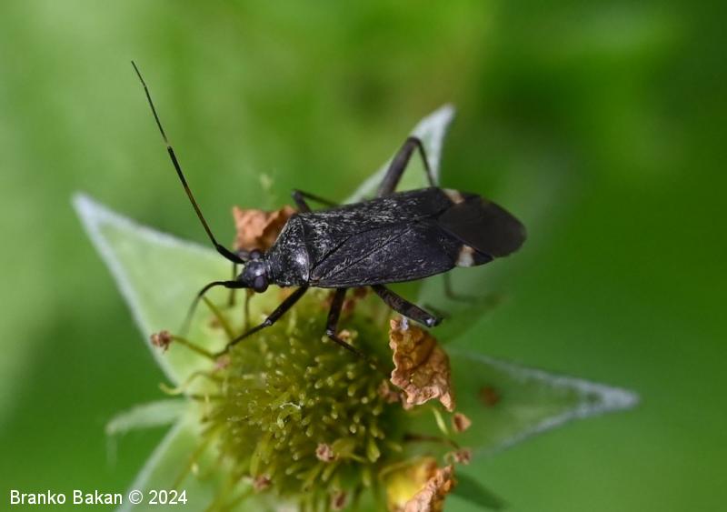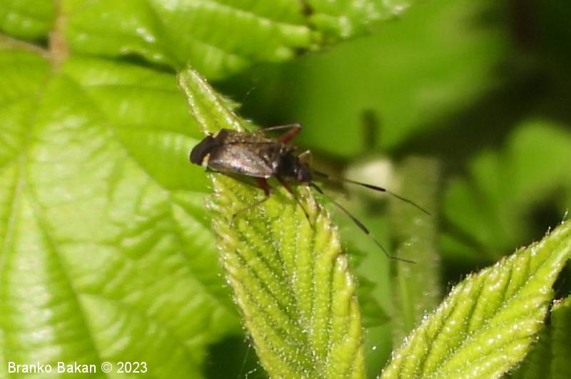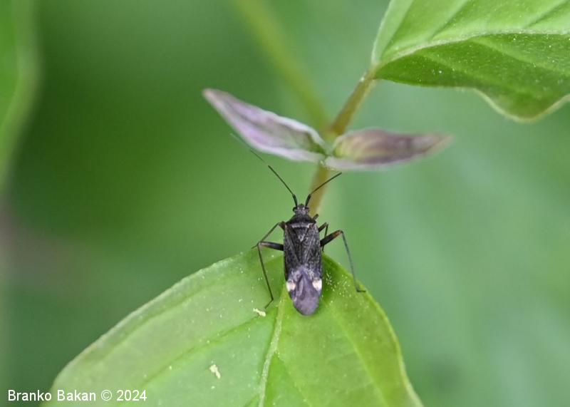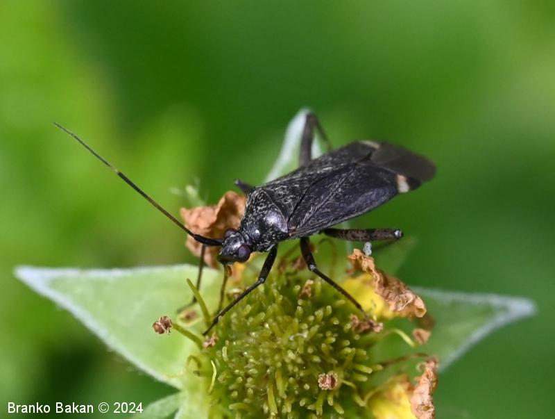 Odrasli osebki: telo je vitko, nebleščeče črno, prekrito s prileglimi, svetlimi dlačicami. Glava je ozko trikotna, z velikimi, rjavordečimi očmi. Tipalnice so dolgočlenaste, skoraj tako dolge kot telo, bazalni členek je kijast, rumenkast, 2. členek je dvobarven, v spodnjem delu rumenkast in ozek, pri koncu pa črn in rahlo betičasto odebeljen, končni del tipalnic je svetel, na konicah temnejši. Oprsje (pronotum) je trikotno trapezasto, črno, pri glavi močno zoženo, svetlo dlakavo. Ščitek (scutellum) je trikoten, enotno motno črn. Pokrovke so večinoma enovito črne do črnorjave, posute z rumenkastimi dlačicami, z večjo svetlo liso oz. progo v spodnjem delu (na kuneusu) ter s črno konico. Noge so rumenkaste ali rdečkaste, redkeje črnikaste, posute s črnimi pikami, zadnja stegenca so nekoliko večja in temna,zadnje goleni so porasle s togimi ščetinami.