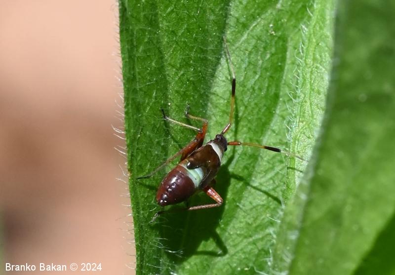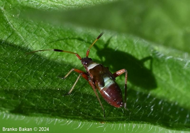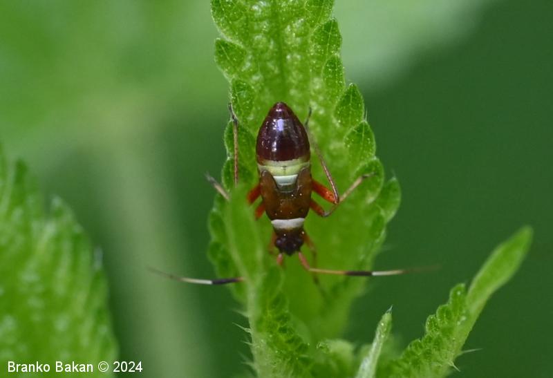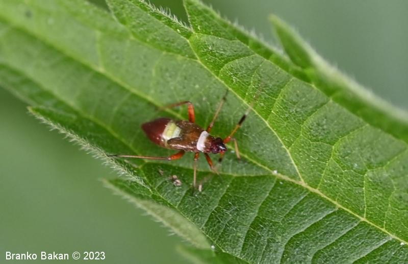 Obnašanje in razvoj: odrasli se pojavljajo od junija do septembra in se navadno zadržujejo na listih grmov in dreves. Sesajo rastlinske sokove različnih vrst. Mlade ličinke so rdečerjave, z izrazito rumeno liso v sprednjem delu zadka in belo obrobljenim oprsjem. Tudi one sesajo rastlinske sokove.