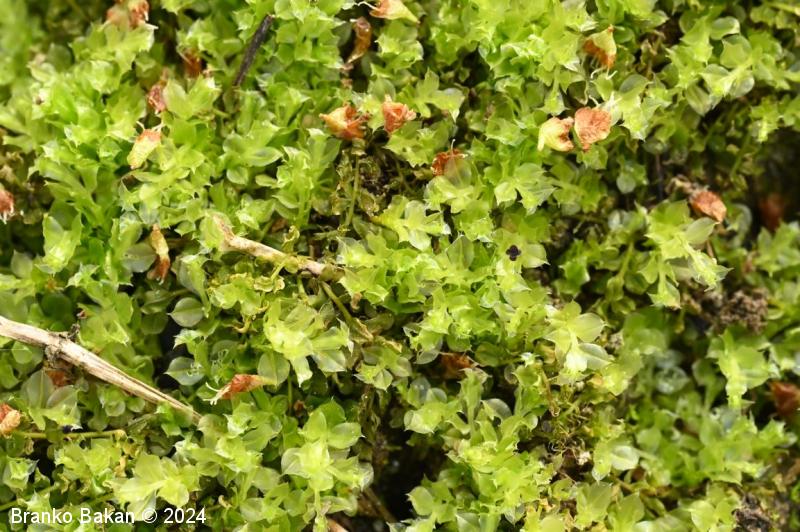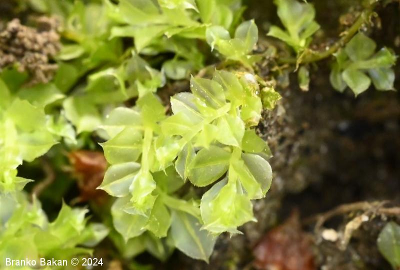 Opis: spolna generacija (gametofit) ima enostavna, dolga, prilegla ali kipeča stebelca, na katerih so premenjalno nameščeni, prosojno rumenkastozeleni lističi. Ti so v obrisu jajčasti do jajčastosuličasti, 2.5 do 3.5 mm veliki, z izrazito osrednjo "žilo", ki se na vrhu podaljšuje v kratko konico, sedeči in se nekoliko iztezajo po stebelcu, po robovih so v zgornji polovici ostro nazobčani, v spodnji polovici zobci večinoma manjkajo ali pa so zelo drobni. Nespolna generacija (sporofit) se razvije na vrhu stebelca in jo tvori daljši pecljat nosilec (seta), ki je lahko ravna ali ukrivljena. Na vrhu sete se razvije do 3 mm velika jajčasta, rjavkasta pušica (kapsula), ki je večinoma navzdol ukrivljena in ima topo koničast pokrovček (operkulum).