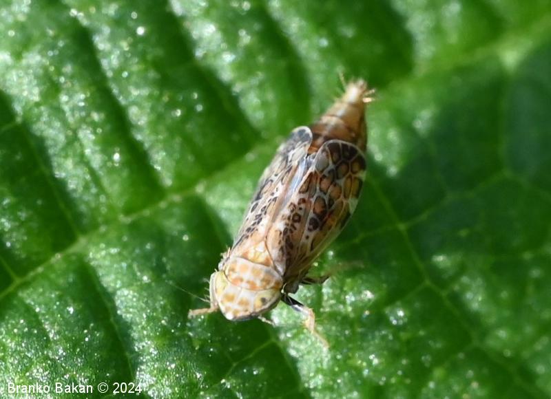 Odrasli osebki: prepoznavni po mrežastih krilih, ki so krajša od zadka, večinoma so rumenkastorjavi, pojavljajo se tudi zelo temni osebki. Glava je trikotna, v sprednjem delu koničasta, svetla, po zgornji strani (verteks) z rumenkastimi lisami in osrednjo svetlo prečno črto (ta je pogosto v obliki križa), po spodnji strani je večinoma črnikasta. Oči so dokaj velike, rumenkaste ali rjavkaste, z belkastimi lisami in progo. Oprsje je polkrožno do polmesečasto, svetlo z rumenimi, kvadratastimi lisami ali zelo temno, skoraj črno, z rumenimi kratkimi progami ali pegami. Ščitek (scutellum) je ostro trikoten, pri temnih osebkih je skoraj v celoti črnikast, pri svetlih osebkih je belkast z rumenkastima lisama ob straneh ter dvema vzdolžnima črtama v osrednjem delu. Pokrovke so nekoliko kvadrataste, na koncu topo zaokrožene, izrazito svetlo in debelo mrežasto žilnate, okenca so črnikasta, rjavkasta ali rumenkasta s temnejšimi notranjimi obrobami, značilne so tudi manjša okenca na apikalnem delu kril. Zadek je vretenast, rumenkast, rjavkast ali s črnikastimi predeli, na koncu koničast in porasel s štrlečimi ščetinami. Noge so svetle, s temnimi progami in lisami, zadnje goleni so porasle s togimi ščetinami.