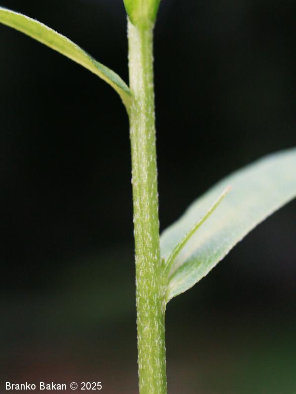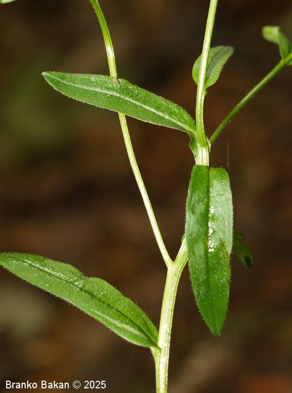 Opis: steblo je večinoma razraslo, togo, lomljivo, v spodnjem delu večinoma golo ali poraslo z navzgor prileglimi dlakami, bleščeče, robato. Spodnji listi so podolgasto črtalasti do skoraj lopatičasti, pri vrhu kratko koničasti, podaljšani v neizrazit pecelj, po spodnji strani navadno porasli s prileglimi dlakami, ki so usmerjene proti bazi lista, ostali listi so manjši, sedeči, večinoma goli ali pičlo dlakavi. Socvetje je večinoma enostaven vijaček, brez podpornega lista. Cvetovi so med seboj odmaknjeni, pecljati, okrog 6 mm veliki, sinjemodri z drobnimi rumenimi goltnimi luskami. Čašni listi so v spodnjem delu zrasli v kratko čašno cev, porasli s prileglimi dlakami, po odcvetu zapirajo vhod v čašo. Plod je orešek, ki je nekje 1.6- do 1.9-krat tako dolg kot je širok.