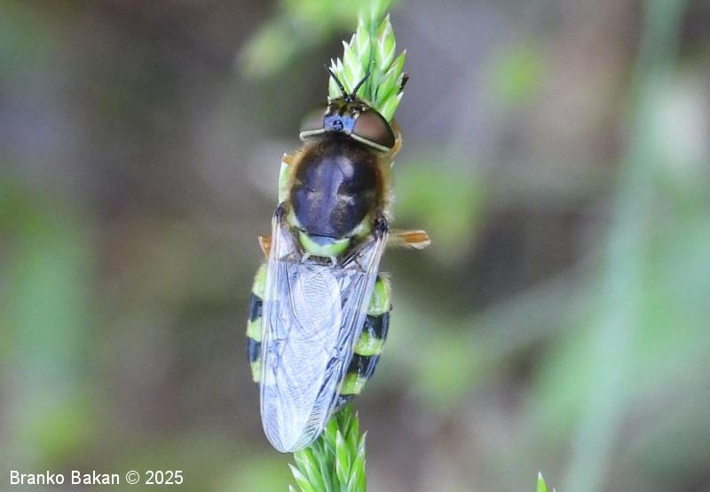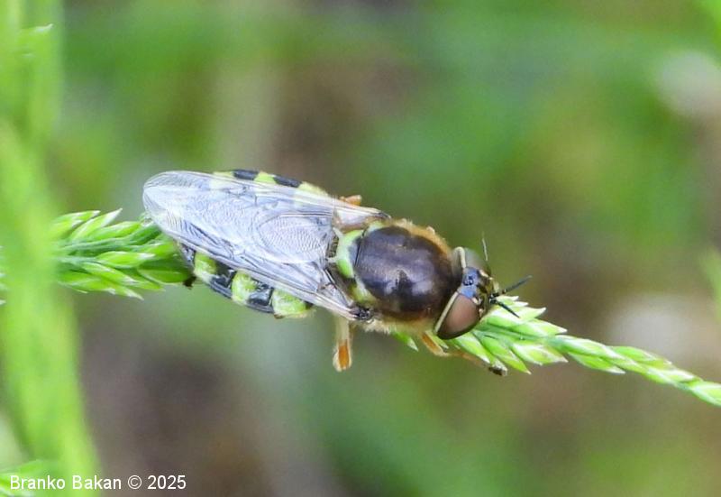 Podobne vrste (*neuveljavljeno ime): zelena brigadirka* (Odontomyia angulata) - progasta brigadirka* (Odontomyia hydroleon) - zelena ježasta muha (Oplodontha viridula).