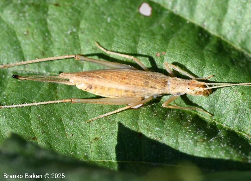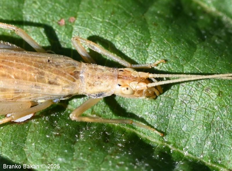 Odrasli osebki: telo je zelo vitko, podolgasto, večinoma slamnato rumeno ali rumenkasto rjavo. Glava je naprej iztegnjena, svetla, pogosto s temnejšo progo na temenu. Oči so svetle, dokaj velike. Tipalnice so tanke in zelo dolge, daljše od telesa, bledikaste. Oprsje je kvadratasto, oprsni ščit je prosojen. Krila so navadno tako dolga ali nekoliko daljša od zadka, lahko pa so zelo kratka, večinoma so prosojna, rahlo mlečnata ali zelenkasta, z dobro vidnimi žilami, pri samcih so večja kot pri samicah. Zadek je rumenkast, pogosto s temnejšimi lisami na segmentih, pri samicah se nadaljuje v dolgo in na vrhu betičasto leglico, samci imajo dva daljša izrastka (cerka). Noge so bledikaste in dokaj dolge, predvsem zadnje noge, ki imajo nekoliko povečana stegenca, na golenih pa so kratki trni.