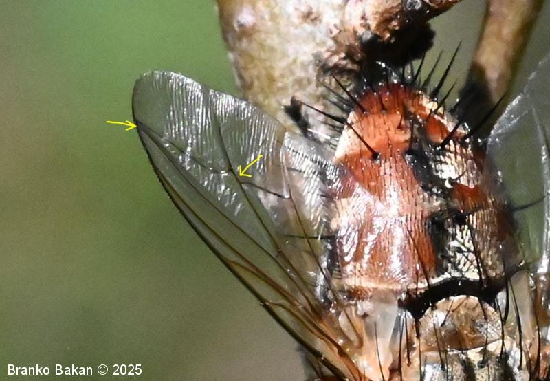Podobne vrste (*neuveljavljeno ime): navadna ščetinarica* (Linnaemyia picta) - vrste rodu bodičarka* (Peleteria spp.) - dvolična šahovka* (Nemorea pellucida).