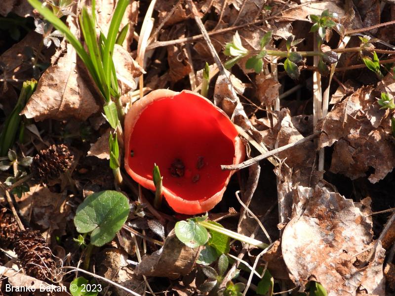 Podobne vrste: cinobrasta čašica (Sarcoscypha austriaca) - oranžna latvica (Aleuria aurantia) - skledica (Peziza sp.).