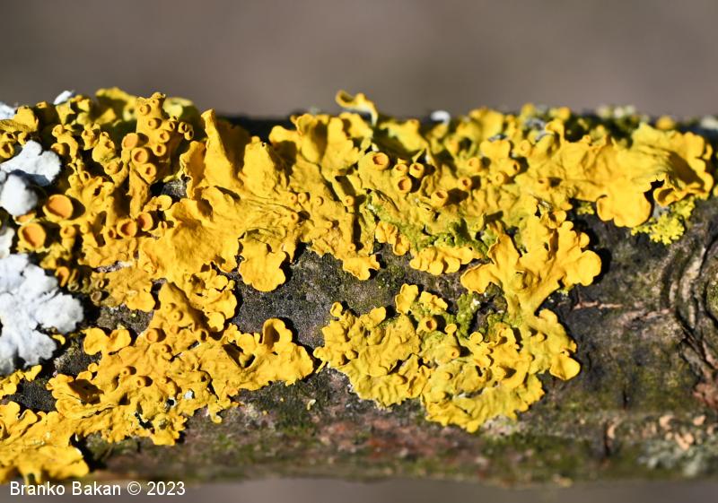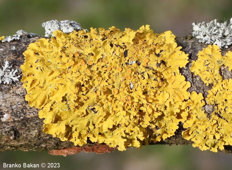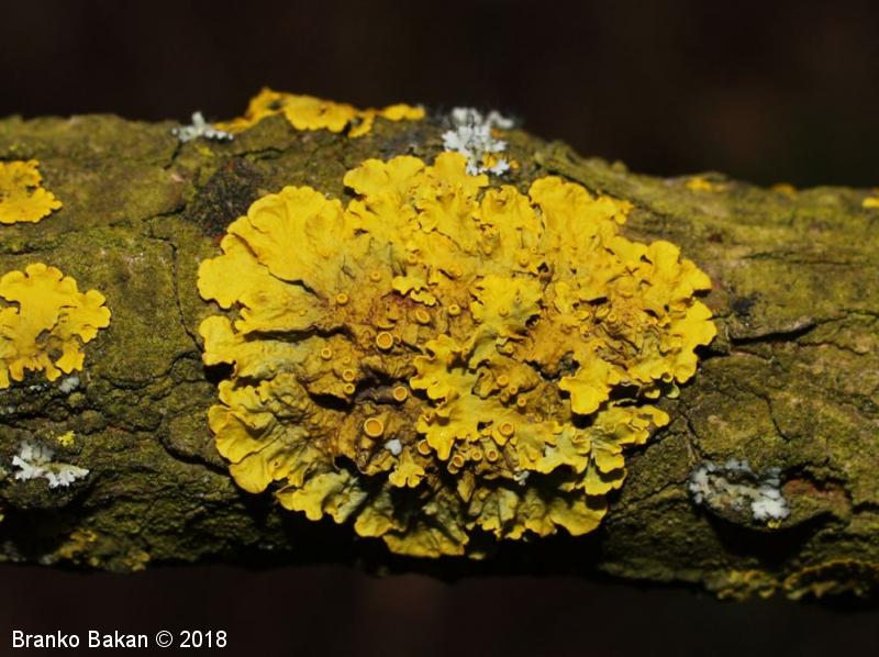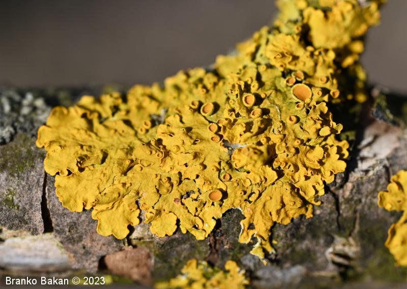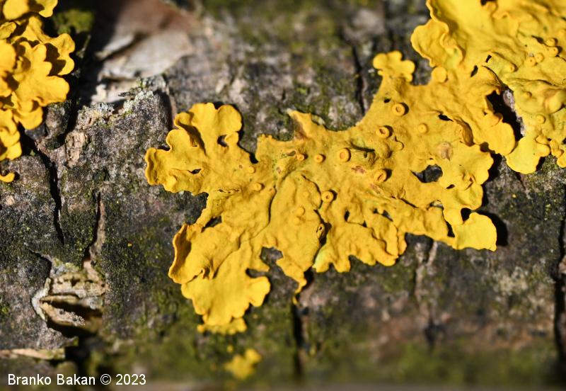 Opis: steljka pogosto tvori velike, krpate in rozetasto razrasle zaplate. Površina steljke je večinoma rumeno oranžna (v svežem stanju z zelenkastim odtenkom), v senčnih legah tudi sivkasta. Krpe so ploske do rahlo privzdignjene, brez poprha, med seboj se prekrivajo in so pogosto nagubane. Na koncih so razširjene, zaokrožene ali nekoliko narezane, dokaj grobe, široke 1-3 mm. Na sredini steljke se včasih pojavljajo dodatne krpice, kar je znak regeneracije lišaja. Spodnja sgtran steljke je svetla, gladka, z razločnimi, enostavnimi rizinami, ki so na robovih krp redkejše. Tvori številne apotecije (čašaste tvorbe), soralijev (prašnato krogličaste tvorbe s sorediji) praviloma ne tvori. Apoteciji so različno stari ter različno veliki, v premeru do 4 mm, so raztreseni ali zgoščeni, sedeči ali nekoliko pecljati, okrogli ali nekoliko iznakaženi, njihov rob je gladek, oranžen disk je sprva vbočen, ob zrelosti postane raven, kasneje lahko postane izbočen.