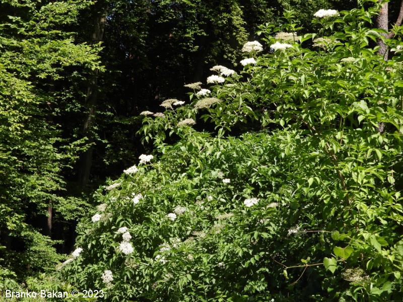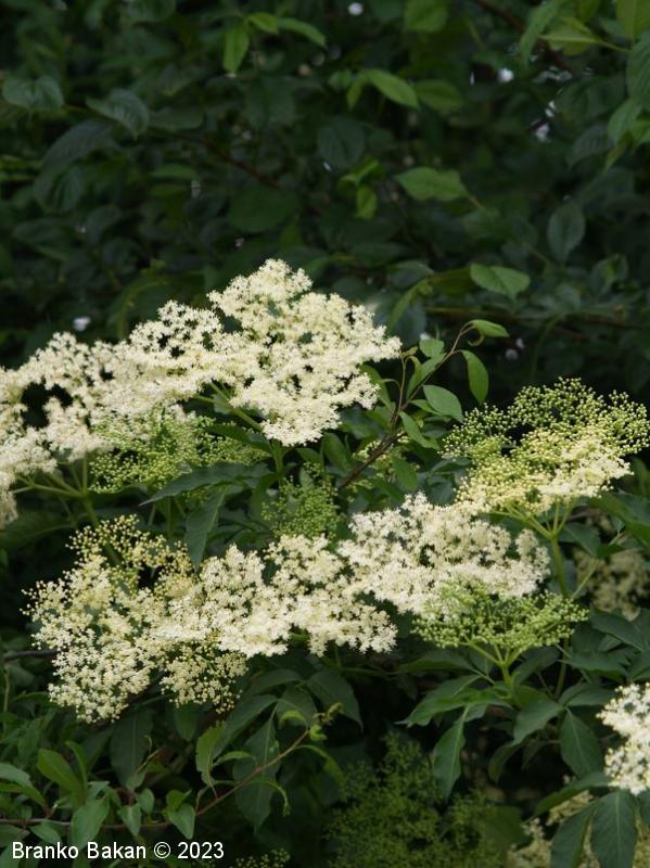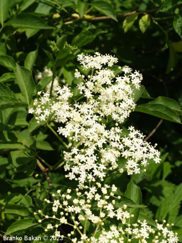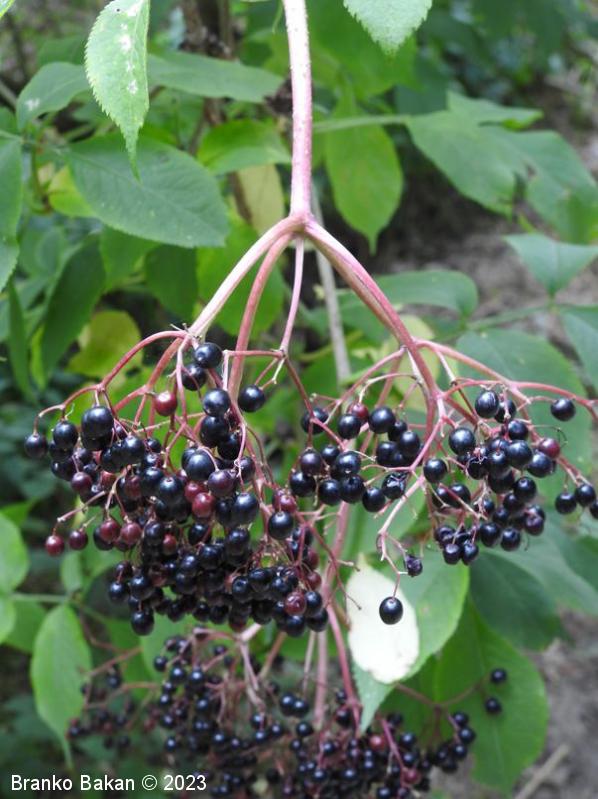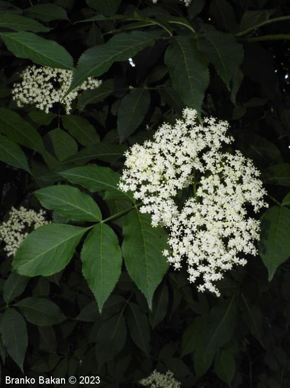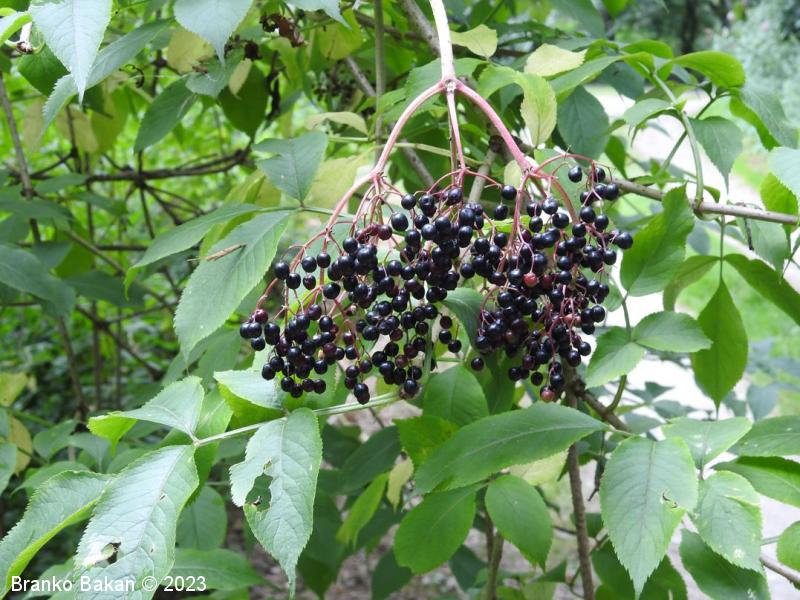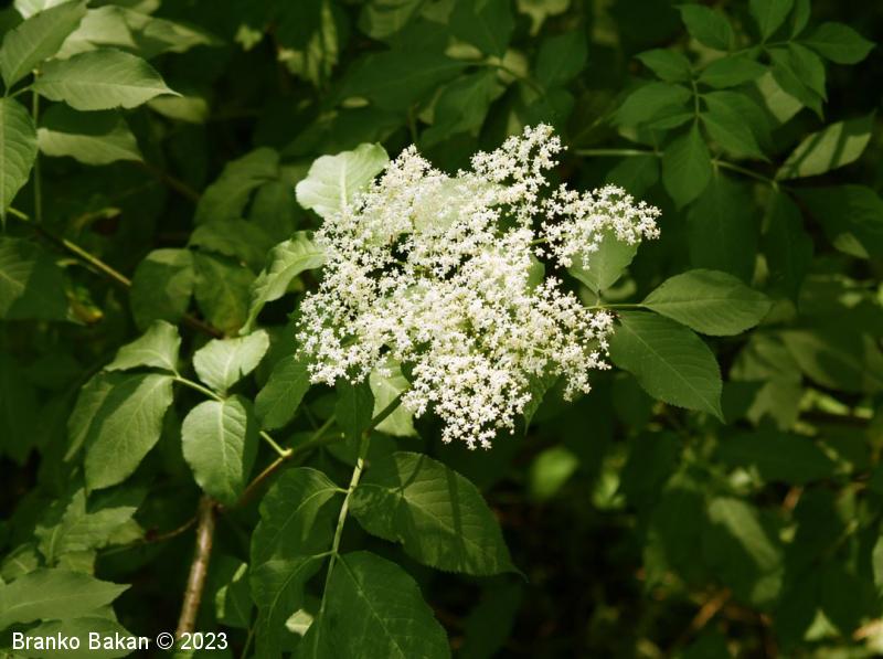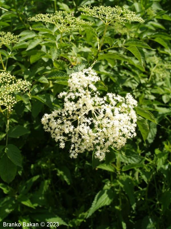 Opis: močno razrasel grm s hrapavim, svetlo sivkastim lubjem, ki ga prekrivajo številne obokane luknjice (lenticele). Veje zelo lomljive, zapolnjene s svetlim, gobastim strženom, ki s staranjem propade, zato so stare veje votle. Listi so 1-krat pernato sestavljeni iz dveh ali treh parov segmentov, nasprotno razvrščeni, razvijejo se na mladih (zelnatih) poganjkih, izrazito neprijetnega vonja. Listni segmenti suličasti do eliptično jajčasti, po robu fino nazobčani, kratko pecljati, 5-12 cm dolgi. Cvetovi drobni, beli, 4- ali 5-števni, zgoščeni v gostocvetna, ovršna, kobulasta socvetja, prijetno dehteči. Plodovi so sočne, koščičaste, črno bleščeče jagode.