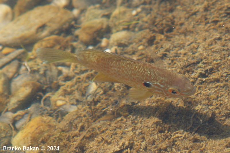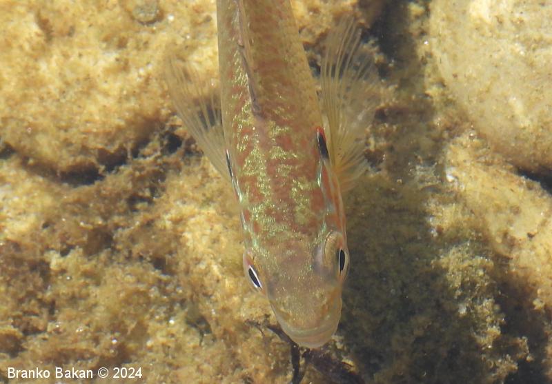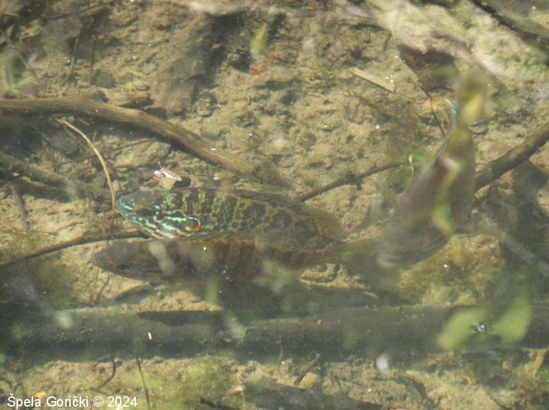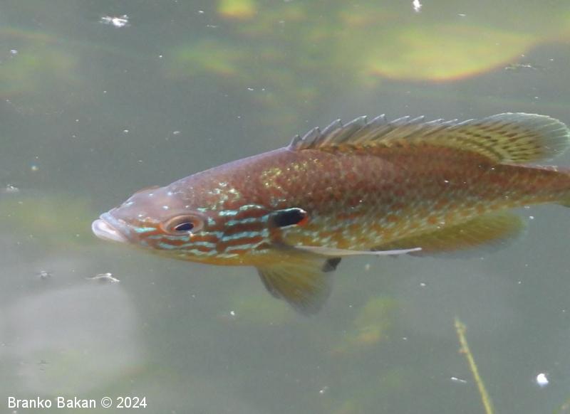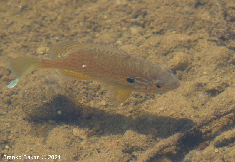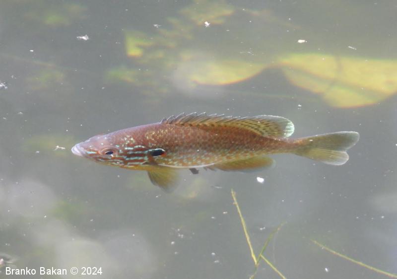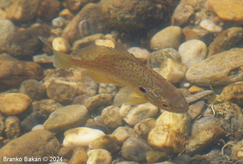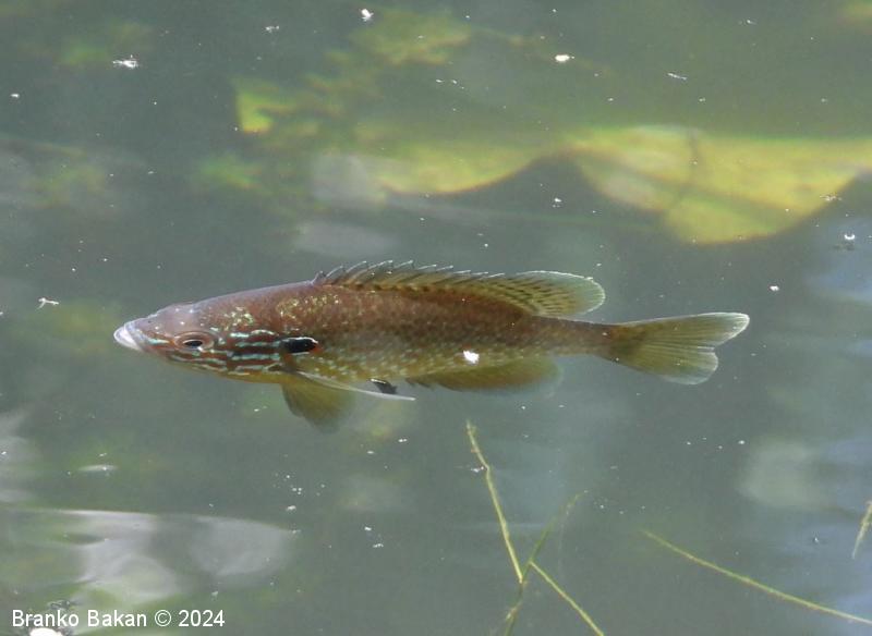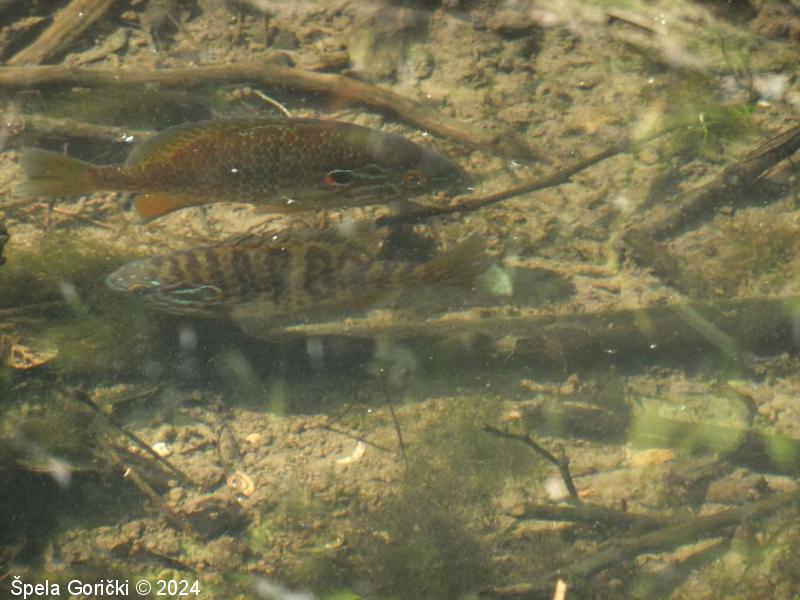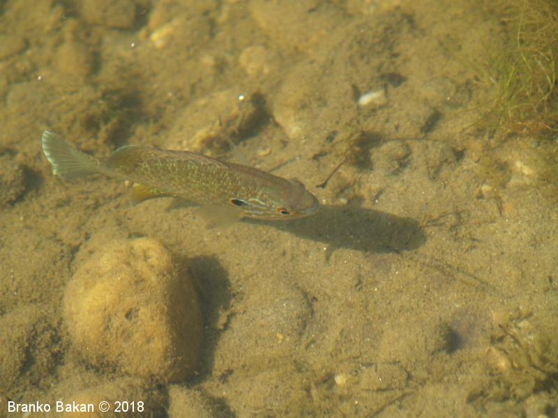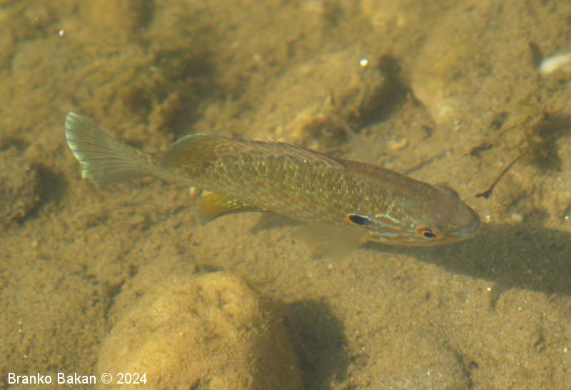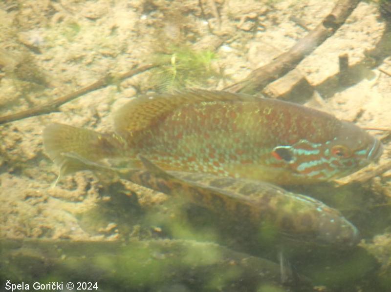 Obnašanje in razvoj: samci so zelo teritorialni. V plitvejših delih si izkopljejo jamico in iz nje odstranijo mulj in rastlinje, ki jo skrbno varujejo pred vsiljivci. Vanjo samica odloži jajčeca, ki jih samec oplodi in varuje do izvalitve mladic. Prehranjuje se z majhnimi vodnimi nevretenčarji, pogosto pa se loti iker in zaroda drugih rib. V Evropo so ga zanesli v poznih 80. letih 19. stol. iz Severne Amerike in se je marsikje naturaliziral.