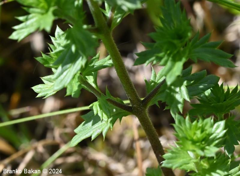Opis: enoletnica. Steblo je pokončno, enostavno ali razraslo (predvsem pri poznopoletnih rastlinah), v prerezu okroglo, bleščeče rjavkasto ali zeleno, po robovih štrleče- do prileglo kratkodlakavo. Listi so jajčasti, globoko pernato nacepljeni do nazobčani, navzkrižno razporejeni, goli ali raztreseno dlakavi, sedeči (brez peclja), razločno žilnati. Podporni listi cvetov so podobni stebelnim listom, le da so bolj nazobčani in ostnato podaljšani, vsaj najnižji so večji od cvetov. Cvetovi so 0.6 do 1 cm veliki, beli z rumenkastim grlom in z večjo spodnjo ustno, ki je 3-delna in ima izrazitejše žile ter rumeno liso. Prašniki so nagnjeni drug k drugemu, prašnice so vijoličaste. Čašni listi so zrasli v 5-delno, golo čašno cev, z ozko trikotnimi zobci. Plodna glavica je jajčasta, 4 do 5,5 mm velika, porasla z daljšimi, resastimi laski.