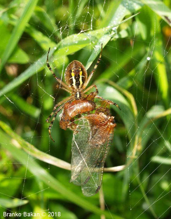 Obnašanje in razvoj: samice pletejo značilne in dobro vidne mreže z dokaj debelimi, belimi svilnatimi nitmi. Iz sredine mreže, v kateri se v preži nahaja z glavo navzdol obrnjena samica, potekata v dve smeri cik-cakasto prepletena pasova močnih niti (t.i. stabilimenta). Samice so zelo agresivne plenilke, ki plenijo tudi precej večji plen od njih samih, njihov ugriz je lahko precej boleč. Samčki ne pletejo mrež in lovijo precej manjši plen. Večinoma se zadržujejo v bližini samic in čakajo na priložnost za parjenje, kar je v času levitve zanje najbolj ugodno. Samice so namreč v času parjenja zelo agresivne in po parjenju samčke največkrat požrejo. Pogosto se parijo s po več samčki, saj lahko shranijo pakete sperme v posebnih delih spolne odprtine (spermateka). Nekateri samčki lahko odlomijo del svojega kopulacijskega organa in si na ta način zagotovijo prenos svojih genov na potomce, vendar imajo samičke prav tako ločeno spolno odprtino, kar spet pomeni, da si tudi samice želijo zagotoviti gene najbolj uspešnih samčkov. Samičke izležejo 200-400 jajčec v posamičen, trebušasto napihnjen kokon, pogosto jih naredijo 3, redkeje 5, nato kaj kmalu poginejo. Mladi pajki se razvijejo zgodaj spomladi in že po osmih dneh lahko spletajo lastne mreže.