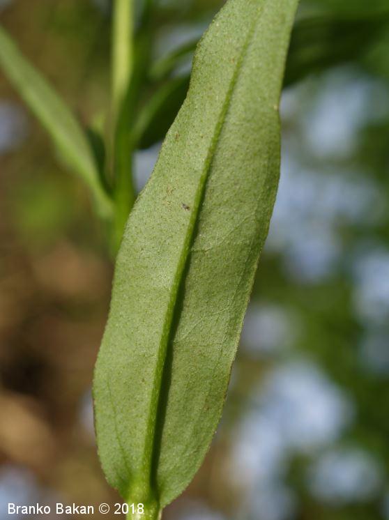 Opis: trajnica, ki se pogosto v spodnjem delu močno razraste in ukorenini. Steblo kipeče, precej lomljivo, okroglo, skoraj golo, le v spodnjem delu včasih poraslo z vodoravno štrlečimi dlakami, nebleščeče, gosto olistano, vendar brez izrazite pritlične rozete. Listi premenjalno razvrščeni, suličasti, celi, sedeči ali kratko pecljati, prileglodlakavi, večinoma obrnjeni proti listnemu vrhu. Socvetje je enostaven vijaček (cvetovi so nameščeni vzdolž ene strani socvetja, v mladosti je spiralasto zvito). Cvetovi precej veliki, do 8 mm široki, sinjemodri z rumenkastim goltom, 5-števni, pladnjasto razprostrti, pecljati (peclji prileglodlakavi, navzgor ukrivljeni), le spodnji cvetovi s podpornimi listi. Venec med seboj zrasel v venčne krpe in v venčno cev, ki je tako dolga kot čašni listi. Čašni listi med seboj zrasli v čašno cev, čašni roglji ozki, črtalasti, prileglodlakavi, ob zrelosti plodu široko razprti. Plod razpade na 4 plodiče.