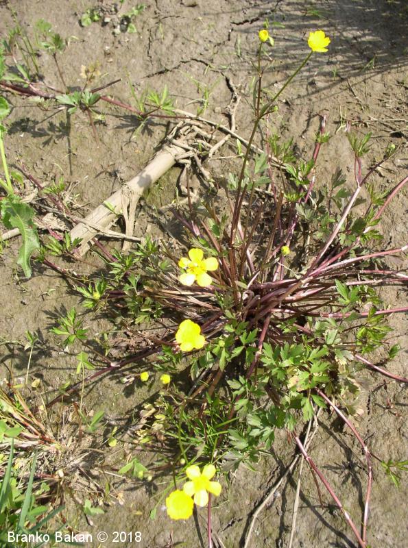 Opis: zelnata trajnica z dolgimi, nadzemnimi, plazečimi pritlikami, ki se mestoma ukoreninjajo. Steblo bolj ali manj golo, okroglo. Pritlični listi dolgopecljati, bleščeči, deljeni v 3, širokojajčaste, nacepljene segmente, ki so po robu neenakomerno plitvo nazobčani. Stebelni listi sedeči, deljeni v črtalaste segmente. Cvetovi do 1.5 cm široki, bleščeče rumeni, 5-števni. Čašni listi prilegli ob venčne liste, dlakavi. Cvetni peclji robati, štrlečedlakavi. Cvetišče je dlakavo, kar vidimo, če odstranimo vse plodnice. Plod je gol, bočno stisnjen orešek, ki se na vrhu podaljša v kratek, skoraj raven kljunec.