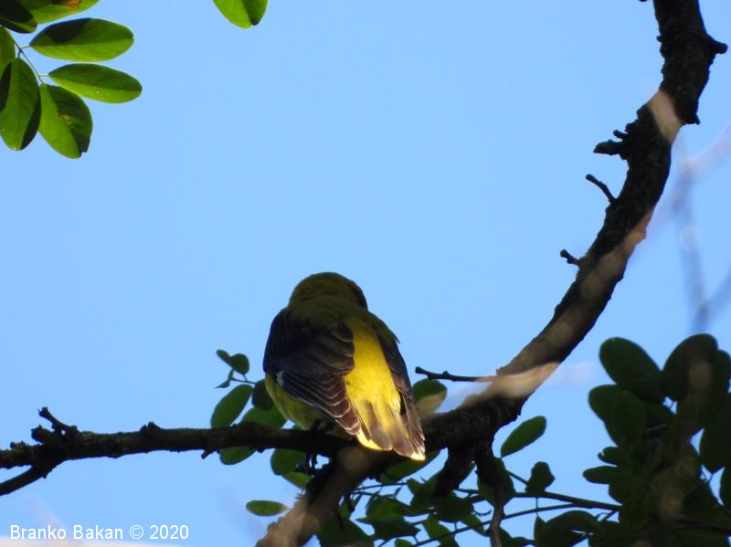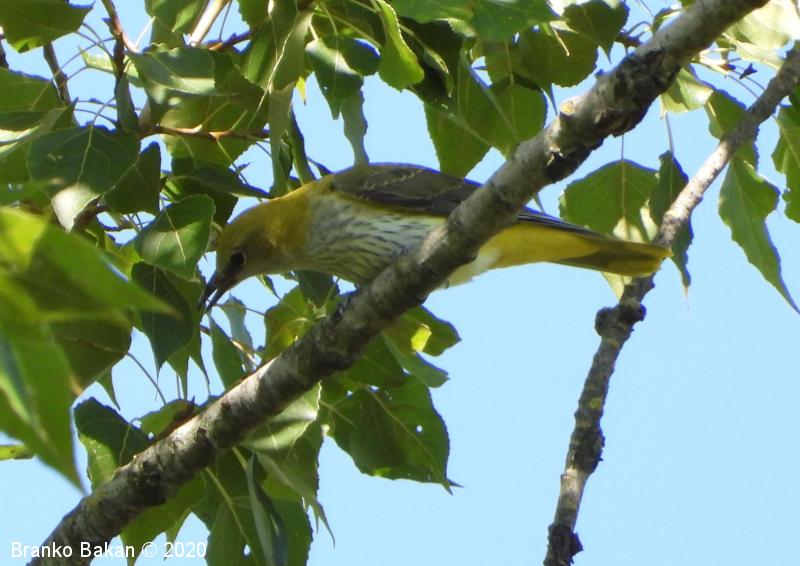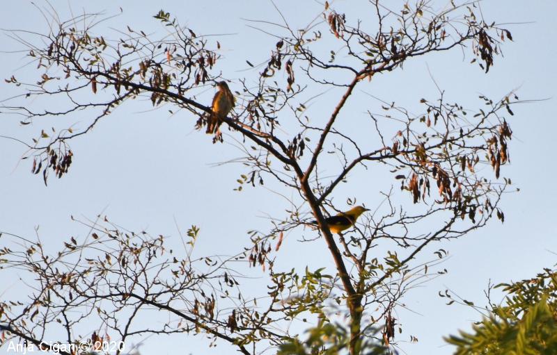Gnezdenje in zarod: gnezdi visoko v krošnjah dreves. Gnezdo je skledičasto, zgrajeno iz vejic, slame in drugih dolgih bilk, spneto med manjše veje. Samica znese 3-5 belih, nekoliko lisastih jajc. Samica vali do 15 dni. Oba starša skrbita za gnezdomne mladiče nekje 2 tedna, nato zapustijo gnezdo, vendar jih starša nekaj časa še vedno krmita. Mladostni osebki so podobni samicam, vendar so bolj zelenkasti, z manj rumene barve.