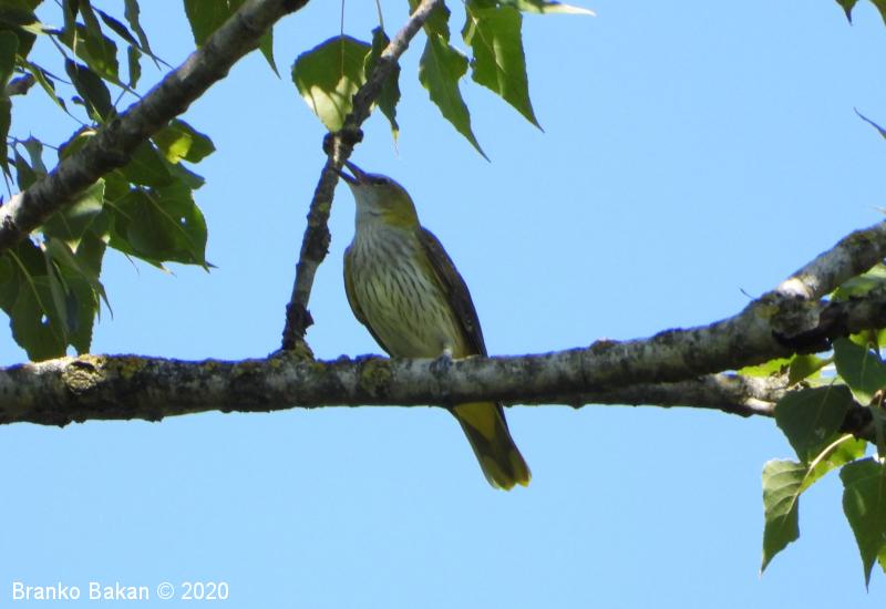 Oglašanje: samčevo petje je zelo prepoznaven "dü-do-lio", ki je na začetku paritvene sezone zelo bogato in glasno, kasneje kitico pogosto "skrajša" na žvižgajoč "ti-tjuu". Oglaša se vreščeče, podobno kot šoja "šššeee-jaaahk".