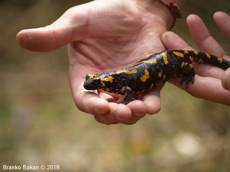 Ličinke: do 6 cm velike, razvijejo se že v telesu samic, ki ne ležejo jajčec (živorodnost). Telo je temno pigmentirano, s svetlejšimi lisami. Za glavo se nahajajo listaste škrge, ki s preobražanjem v odrasle živali počasi krnijo. Repni greben se le malo izteza po hrbtu in se prične šele v višini zadnjih nog. Rep z bočne strani skorajda ni sploščen in je daljši od 1/3 telesa.