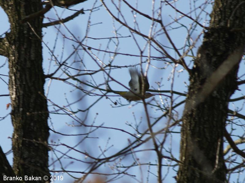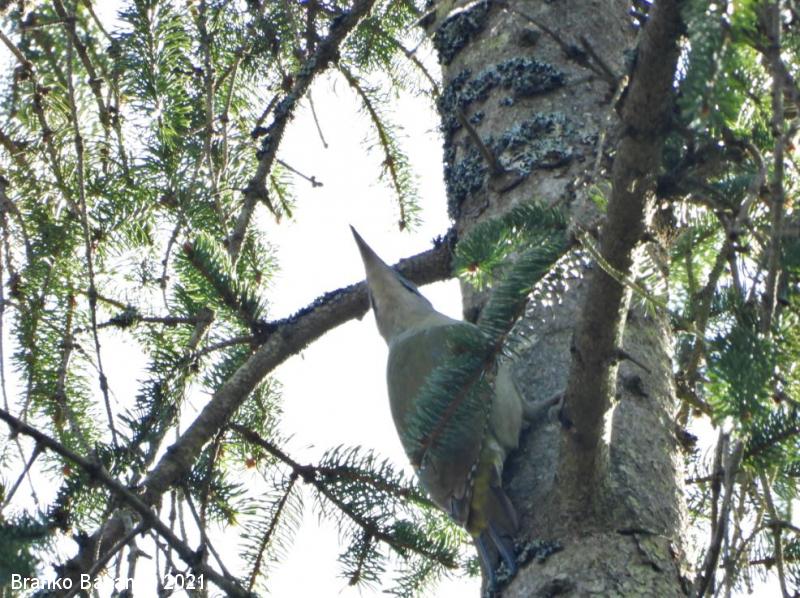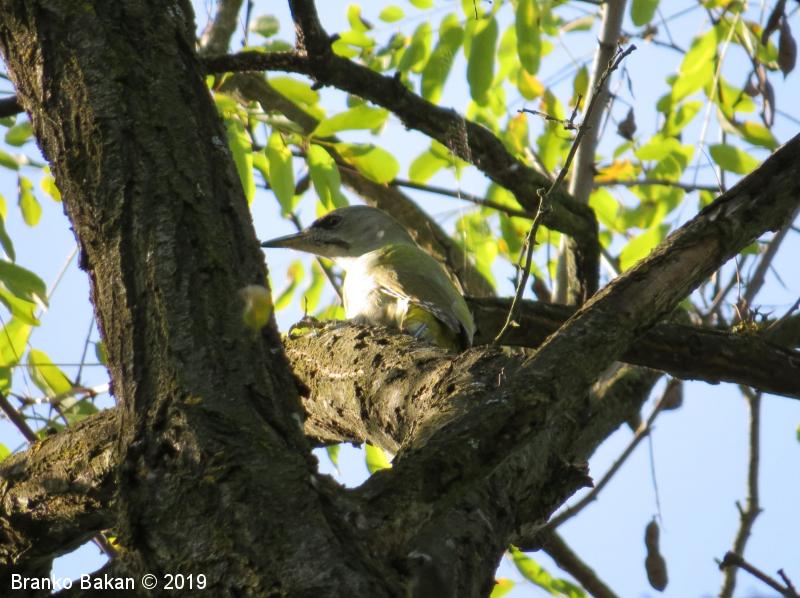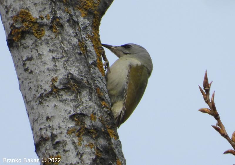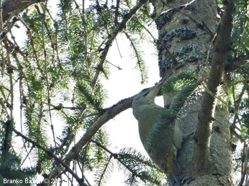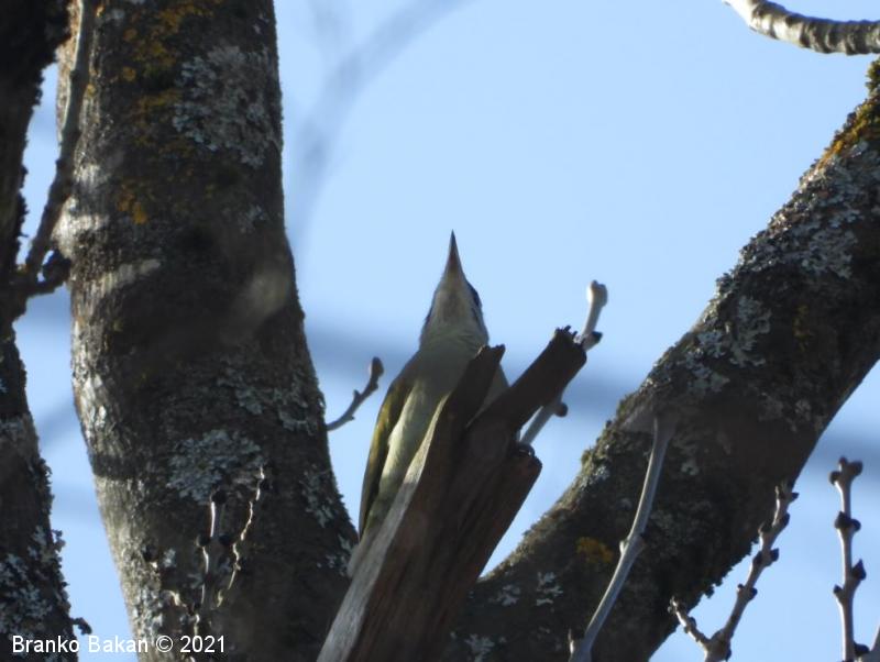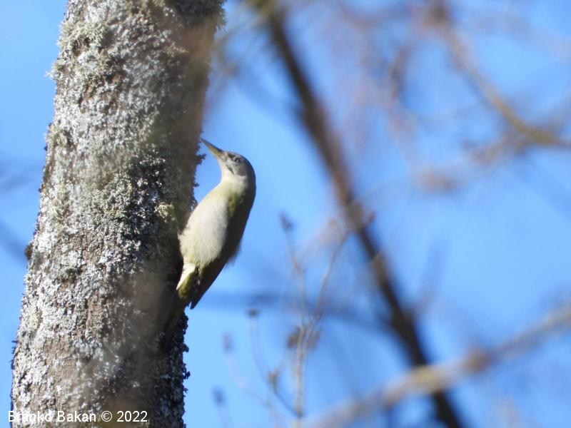 Oglašanje: zelo podobno zeleni žolni, vendar bolj oddaljeno in manj "smejoče", proti koncu pojemajoče in nenadoma prekinjeno "kjü-kjü-kjü-kjü küü küü küü kü..".