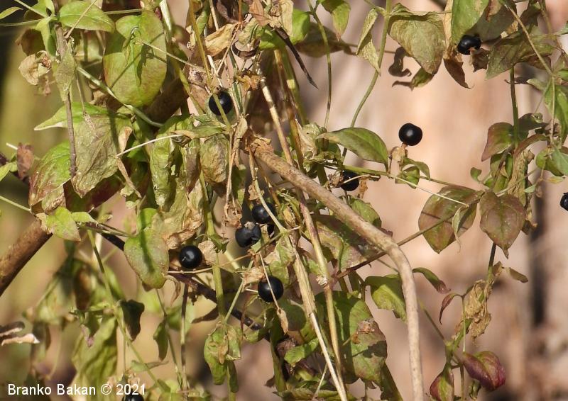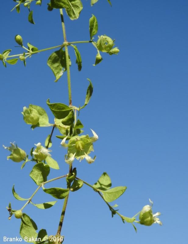 Opis: močno razrasla trajnica, ki se največkrat kot plezalka razrašča po grmovju ali visokih steblikah. Steblo izrazito pakobulasto (cimozno) razvejano, gosto kratkodlakavo, okroglo, precej lomljivo. Stranski poganjki izraščajo pravokotno. Listi jajčasto suličasti, sedeči, na vrhu koničasti, po spodnji strani dlakavi, nežni, mrežasto žilnati, nasprotno razvrščeni. Cvetovi v neizrazitih pakobulih in zato navidezno posamični, dolgopecljati, do 2 cm veliki. Venčni listi z globoko preklano ploščico, beli ali zelenkasti, precej ozki in z 1 cm dolgo, ozko žebico. Čaša je skledičasta, zvezdasto razprostrta. Plod je črna jagoda (posebnost!), ki se ob zrelosti posuši in razpoči.