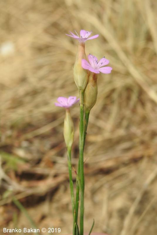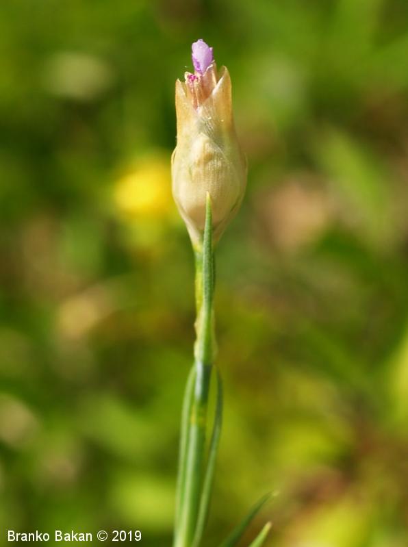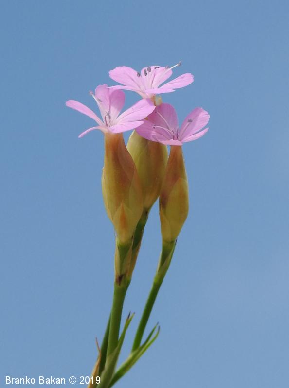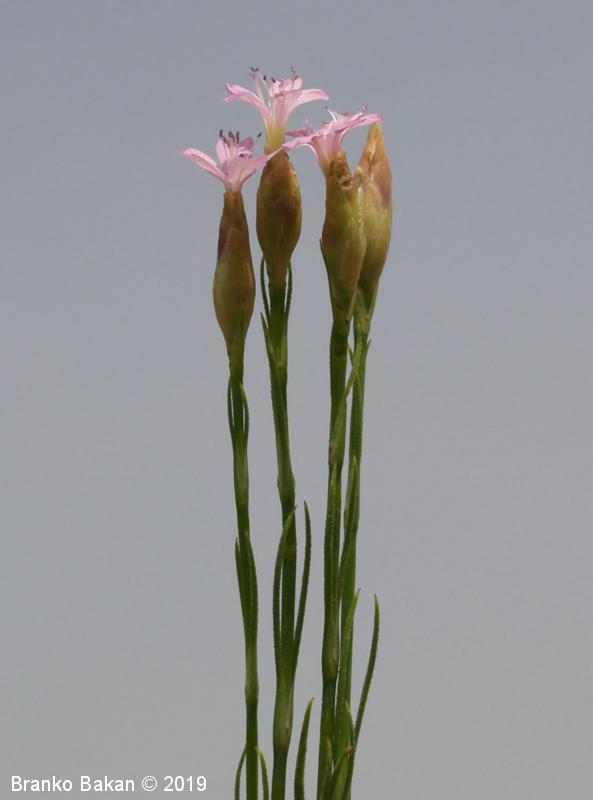 Opis: enoletnica. Steblo enostavno ali v spodnjem delu rozetasto razraslo, pokončno, sinjezeleno, gladko, golo. Listi ozko črtalasti, le pritlični listi včasih podolgasto lopatičasti, nasprotno razvrščeni, togi, po robu rahlo resasti. Cvetovi posamični ali v rahlih ovršnih socvetjih, 1.5-2 cm veliki, 5-števni, bledo rožnati ali škrlatni. Zgornji podporni listi (čašne luske) široko suhokožnati, jajčasti, v celoti obdajajo čašne liste, zato navidezno spominjajo na čašo. Venčni listi s plitvo srčasto ali zaokroženo ploščico in zelo ozko, 1.2-1.5 cm dolgo žebico, pogosto temno žilnati. Čašni listi med seboj zrasli v zvonasto čašo, 4-6 mm dolgi. Prašnikov 10, vratova na pestiču sta 2. Plod je glavica.