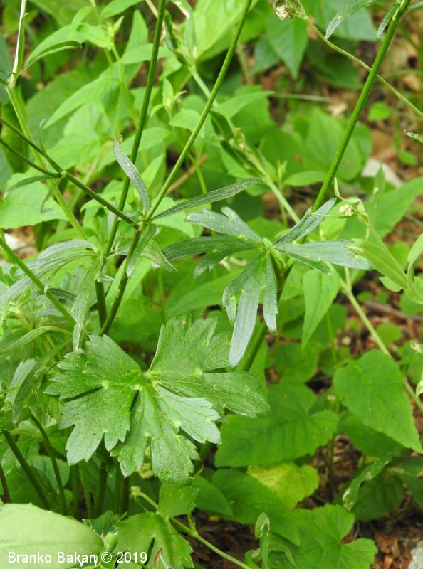 Opis: pokončna zelnata trajnica brez pritlik. Steblo je v spodnjem delu rastline bolj ali manj golo, okroglo, v cvetni regiji štrlečedlakavo, štirirobo (cvetni peclji so izbrazdani, pogosto zasukani). Pritlični listi so dolgopecljati, skoraj do dna nacepljeni v 3 do 5 širokih, grobo nazobčanih do plitvo krpatih segmentov, goli ali kratkodlakavi (osrednji segment ni pecljato podaljšan). Stebelni listi so sedeči, deljeni v ozko črtalaste segmente. Cvetovi so do 1.5 cm široki, bleščeče rumeni, v sredini nekoliko temnejši, 5-števni. Čašni listi so prilegli ob venčne liste, štrleče dlakavi. Cvetišče je dlakavo, kar vidimo, če odstranimo vse plodnice. Plod je gol, bočno stisnjen orešek, ki se na vrhu podaljša v izrazit ukrivljen kljunec.