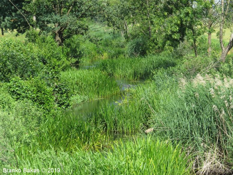 V mirnejših in bolj širokih delih ima razvito bogato vodno vegetacijo, ki jo največkrat tvorijo razne vrste žabjih lasov, dristavcev, pa tudi vodnega in studenčnega jetičnika, tujerodne invazivne kanadske vodne kuge in ponekod dokaj redkega rumenega blatnika, mestoma se razrastejo strnjeni sestoji ježkovja, sladikovja in trstičevja. Na odsekih med naselji in obdelovalnimi površinami se kot ozek pas ob strugi vijejo ostanki nekdaj bujnejših močvirskih črnojelševih in jesenovih sestojev ter gručasto razraslih vrbovij, ki so znak zaraščanja. V preteklosti je Črnec pogosto poplavljal, zato so bila območja v njegovi neposredni bližini najbolj primerna za vlažne travnike. Teh dandanes praktično ni več, z njimi so izginile tudi mnoge redke vrste, kot je npr. močvirska logarica oz. "rdeči zvonček / tulipan", kot mu pravijo domačini.