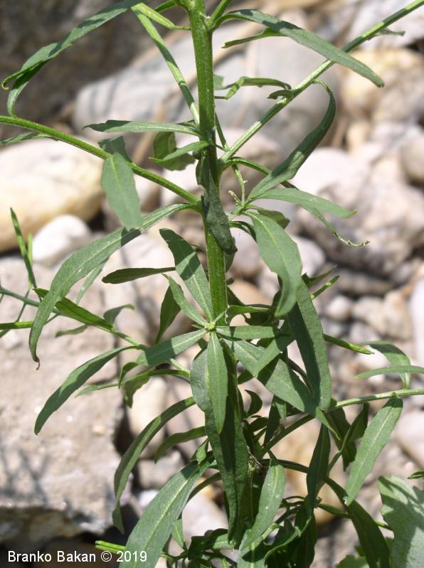 Opis: pokončna, le pri vrhu stebla zrasla, gosto olistana enoletnica ali dvoletnica. Listi črtalasti ali suličasti, pri dnu zoženi, premenjalno razvrščeni, sedeči (ne objemajo stebla), plitvo nazobčani, porasli z vilasto razraslimi dlakami. Cvetovi združeni v podolgovata, ovršna, grozdasta socvetja, 5 do 12 mm veliki, dehteči, živorumeni. Čašni listi 2-3 mm veliki, goli ali raztreseno dlakavi, mnogo krajši od cvetnih pecljev. Prašnikov 6, plodnica nadrasla. Plod je ozko podaljšana, 2-loputasta glavica (lusk), ki ob zrelosti štrli v 45° kotu vstran od stebla.
