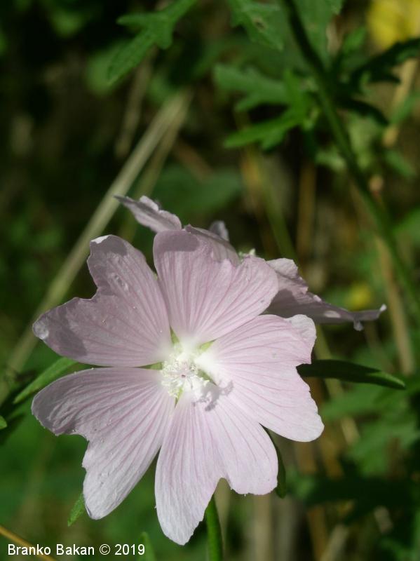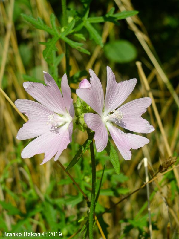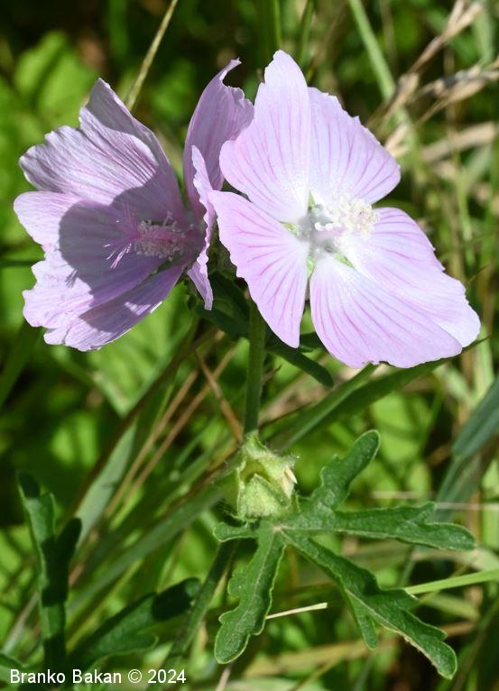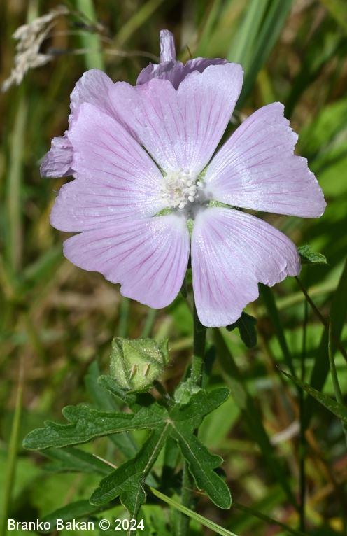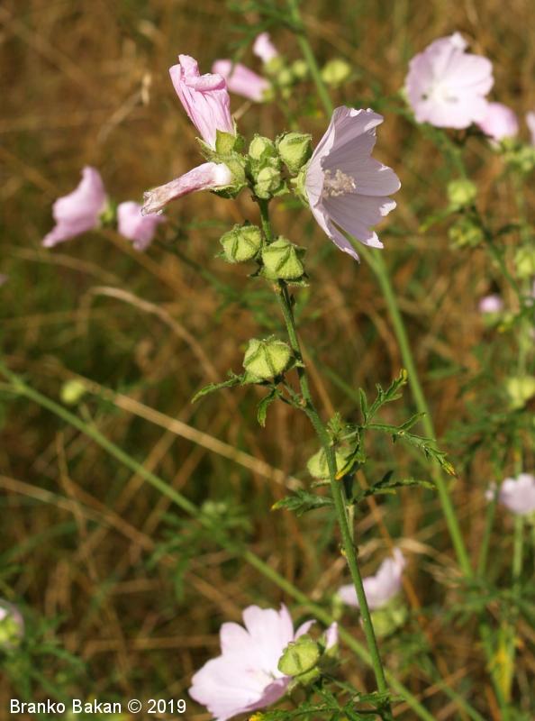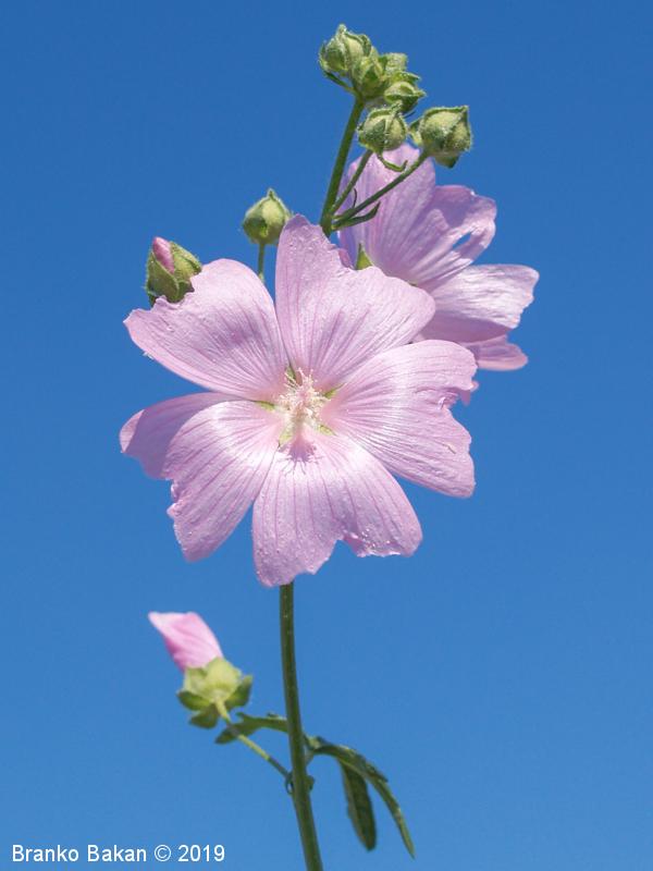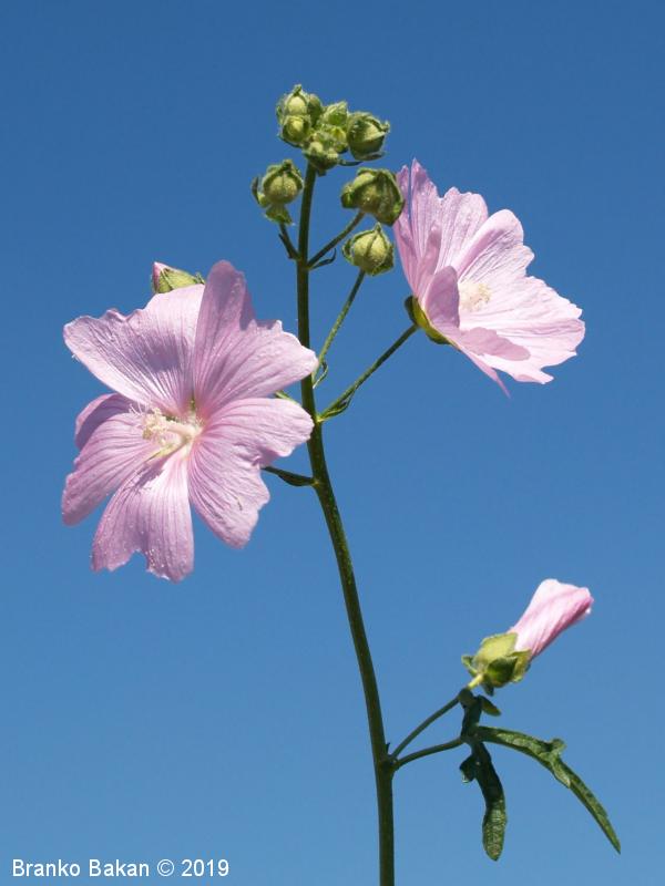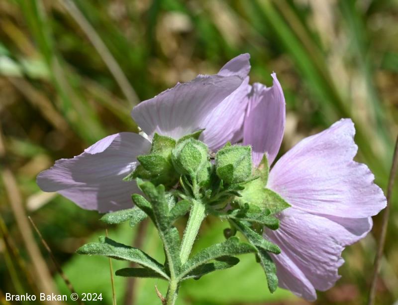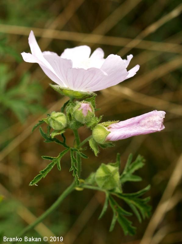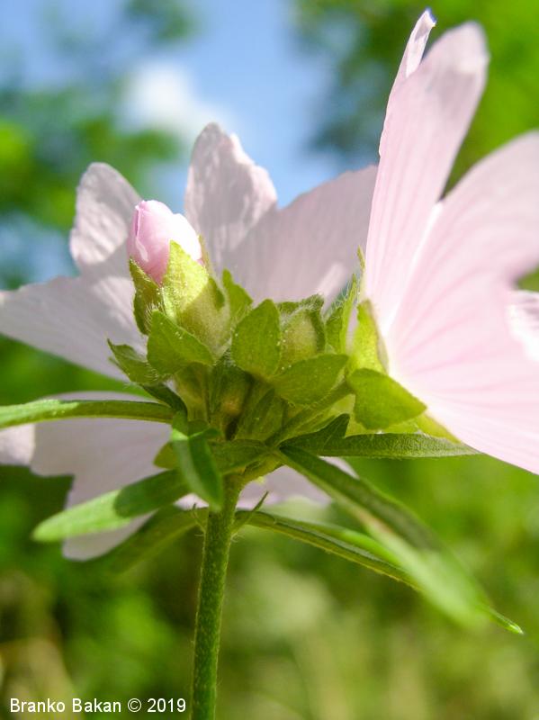 Opis: pokončna trajnica z močno koreniko. Steblo okroglo, krepko, pri vrhu poraslo z zvezdastimi laski (predvsem peclji listov in cvetov). Listi izrazito dolgopecljati (pri dnu s parom drobnih prilistov), premenjalno razvrščeni, do sredine deljeni v ozke, krpate roglje, le pritlični listi plitvo krpati, porasli z zvezdastimi dlakami. Cvetovi bledorožnati, posamično v zalistjih ali zgoščeni v ovršnih socvetjih, 3-5 cm veliki. Venčni listi na vrhu plitvo ugreznjeni, zelo nežni. Prašniki številni, rdečkastorožnati, med seboj zrasli v dolgo prašnično cev. Čaša dvojna, sestavljena iz treh zunanjih, manjših, jajčastih lističev in petih večjih, skoraj trikotnih lističev, vsi so porasli z zvezdastimi laski. Plodiči razporejeni v krogu, goli, prečno nagubani.