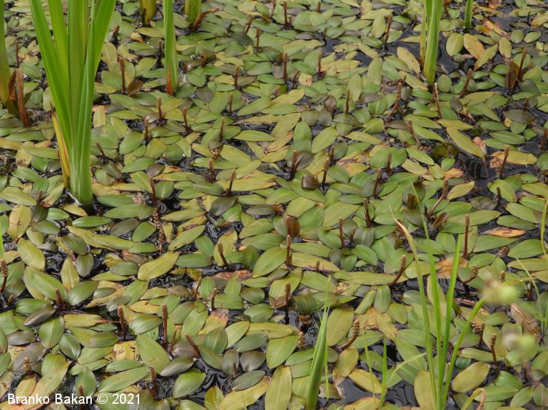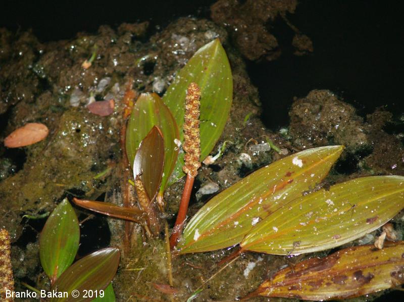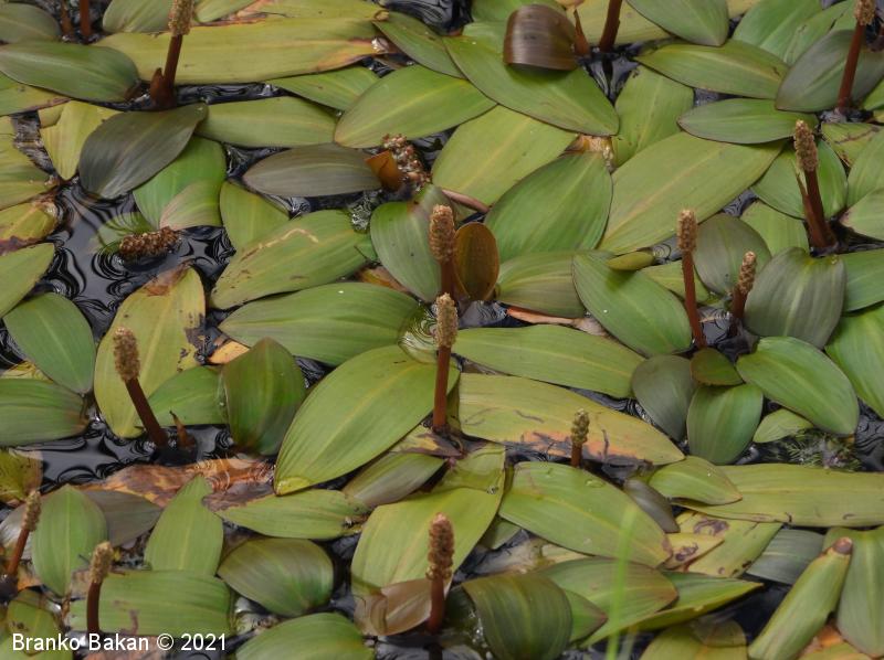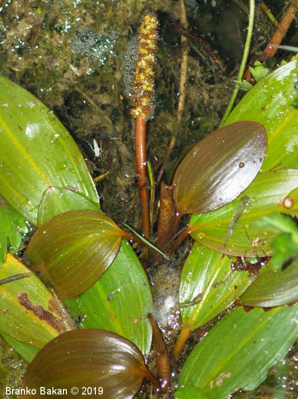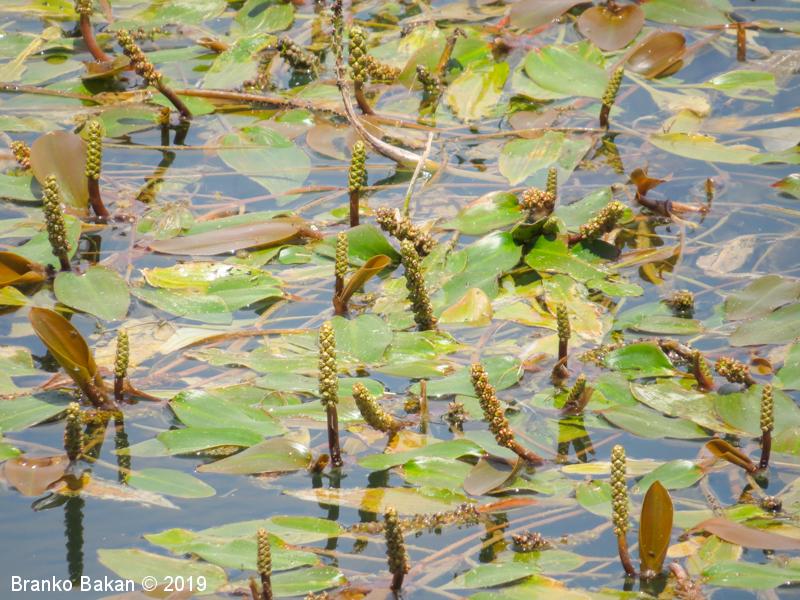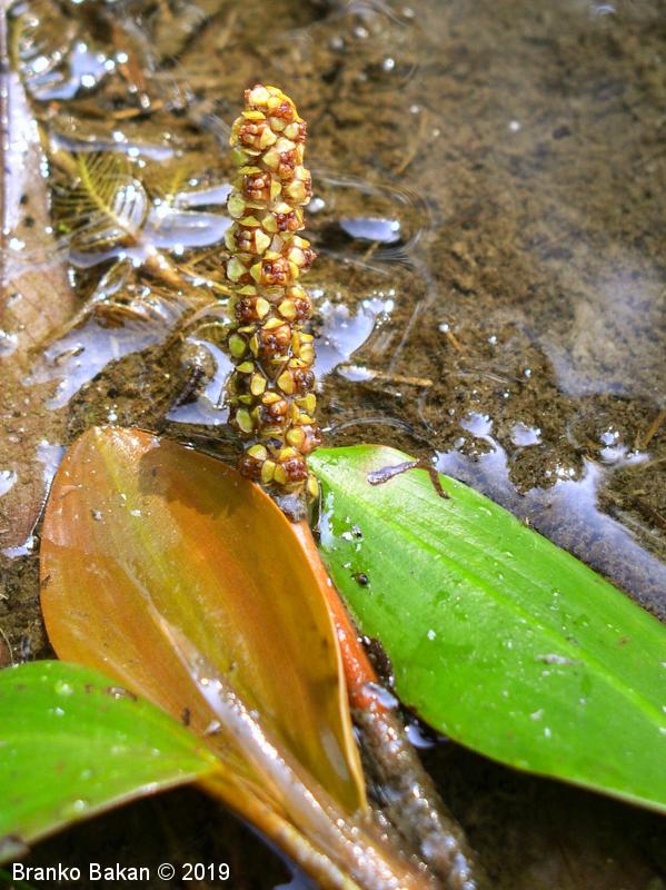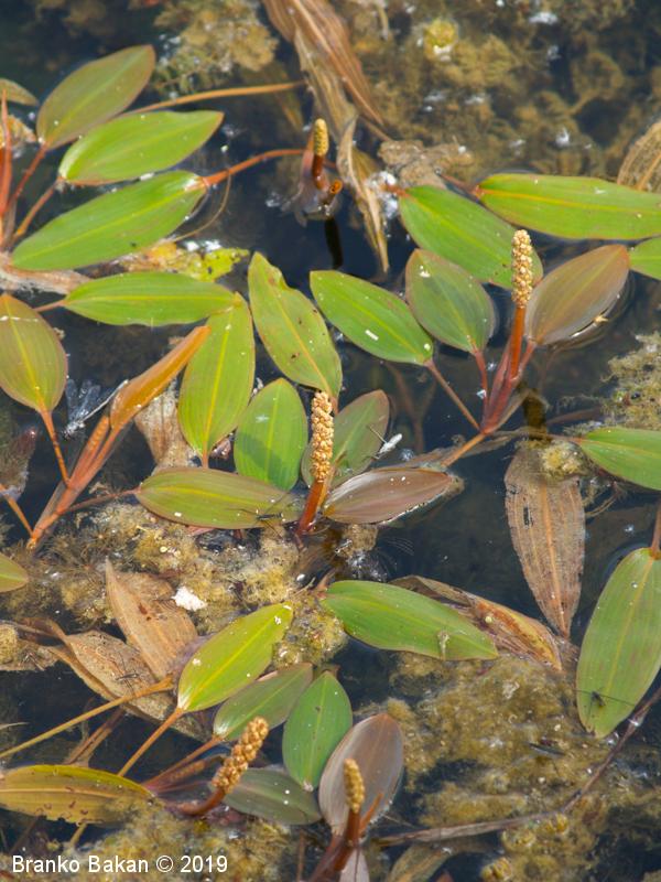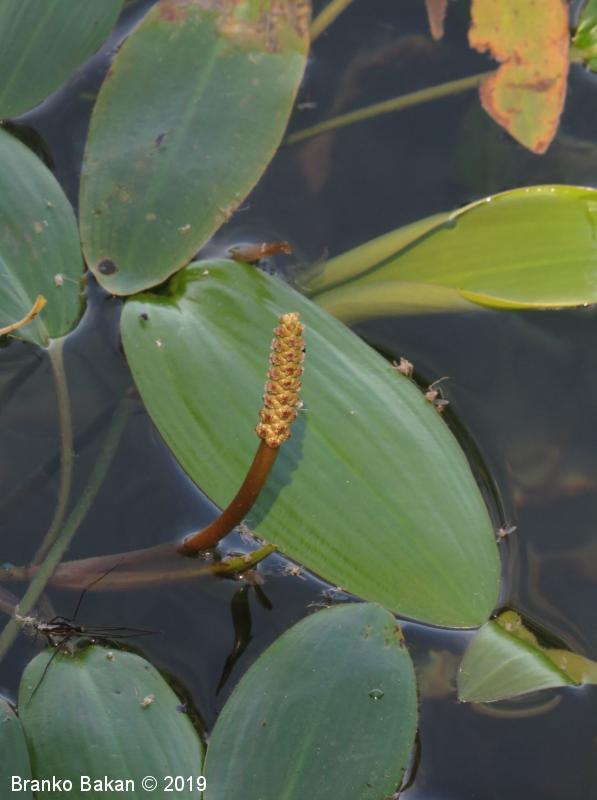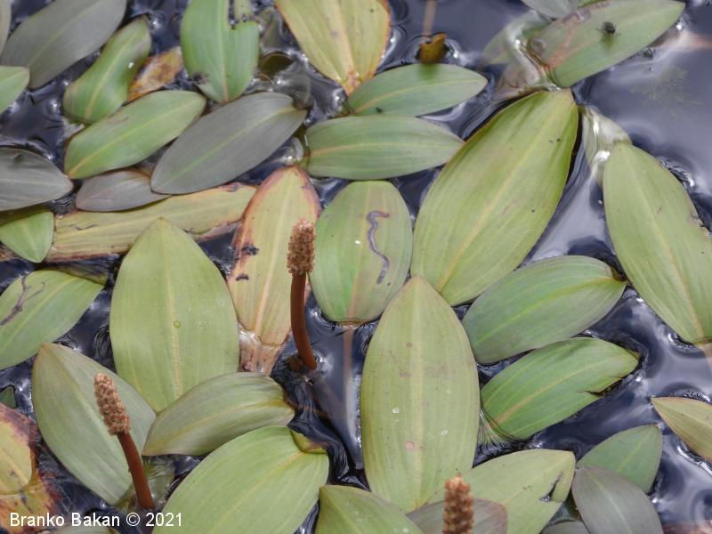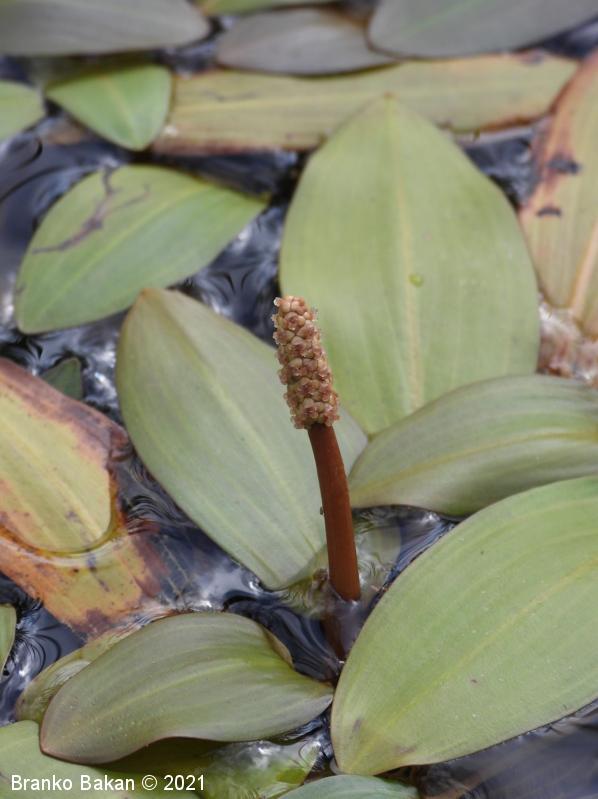 Opis: ukoreninjena vodna trajnica s premenjalno razvrščenimi potopljenimi in plavajočimi listi. Plavajoči listi so podolgasto eliptični, dolgopecljati, nekoliko usnjati, pogosto rjavo obarvani, pri dnu klinasto zoženi, do 15 cm dolgi in okrog 4 cm široki, z vzporednimi, lokasto ukrivljenimi žilami. Potopljeni listi so ozko eliptični do črtalasti, dolgopecljati, pri dnu zoženi. Socvetje je zgoščeno klasasto, dolgopecljato (pecelj je tik pod cvetovi nekoliko odebeljen). Cvetovi so drobni, rjavkastozeleni, sedeči, 4-števni. Plodič je podoben orešku, trebušasto zaobljen.