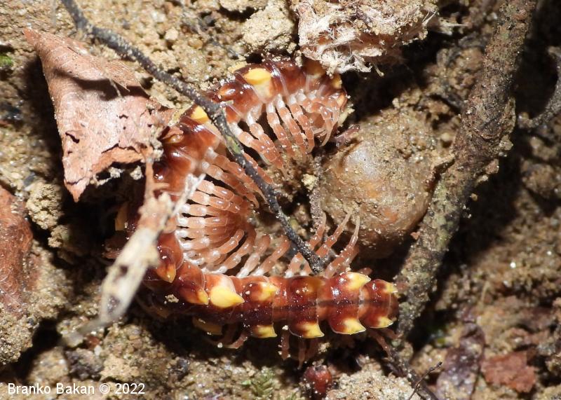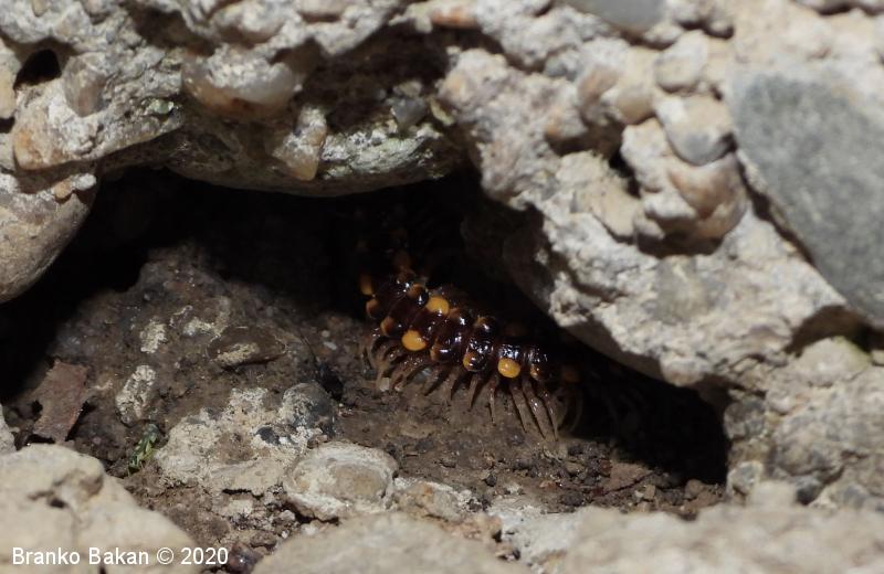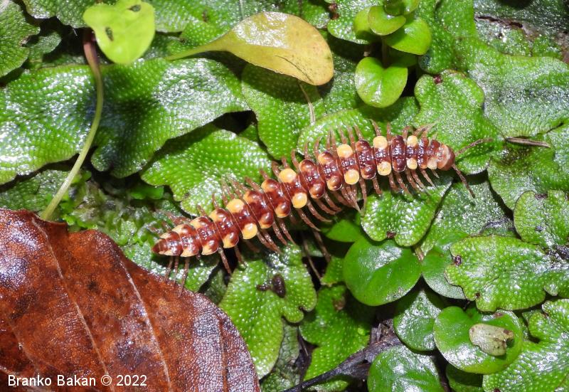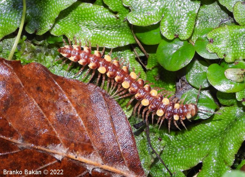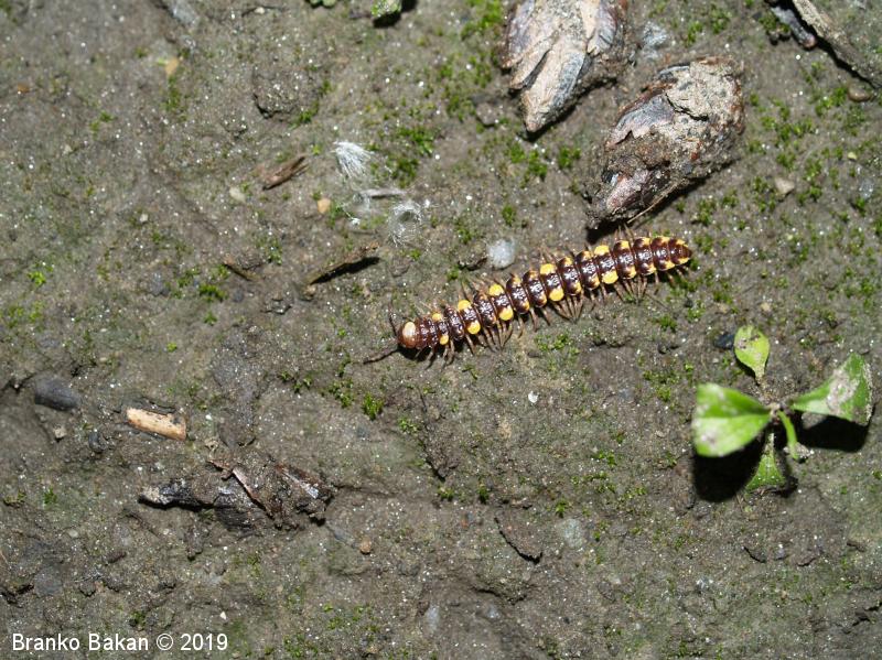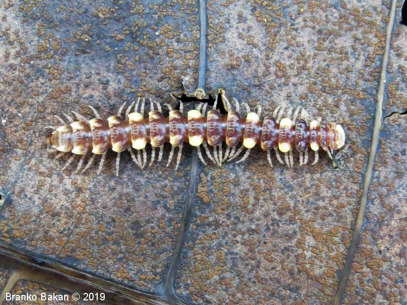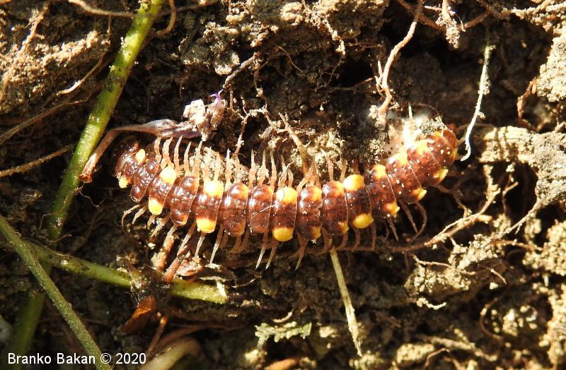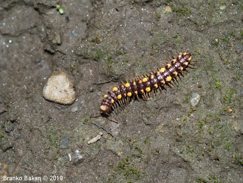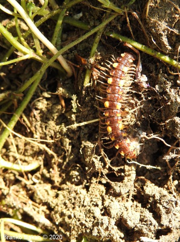 Podobne vrste: navadna ploščata kačica (Polydesmus complanatus) - navadna striga (Lithobius forficatus).