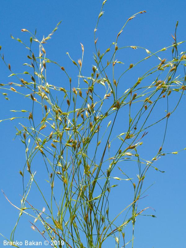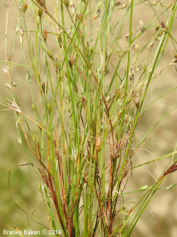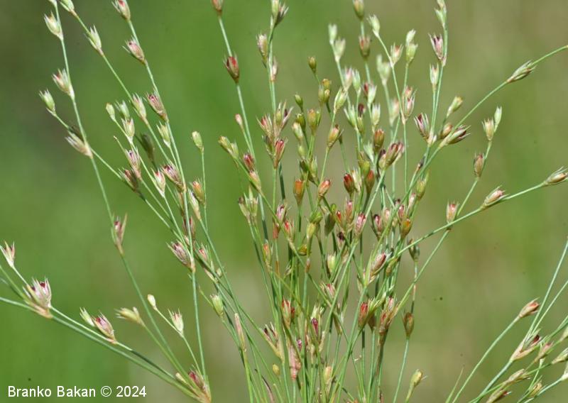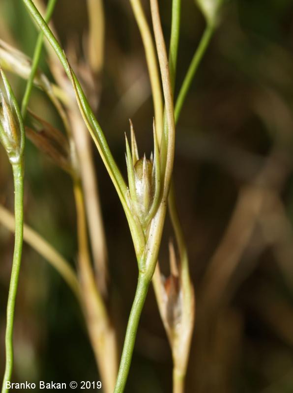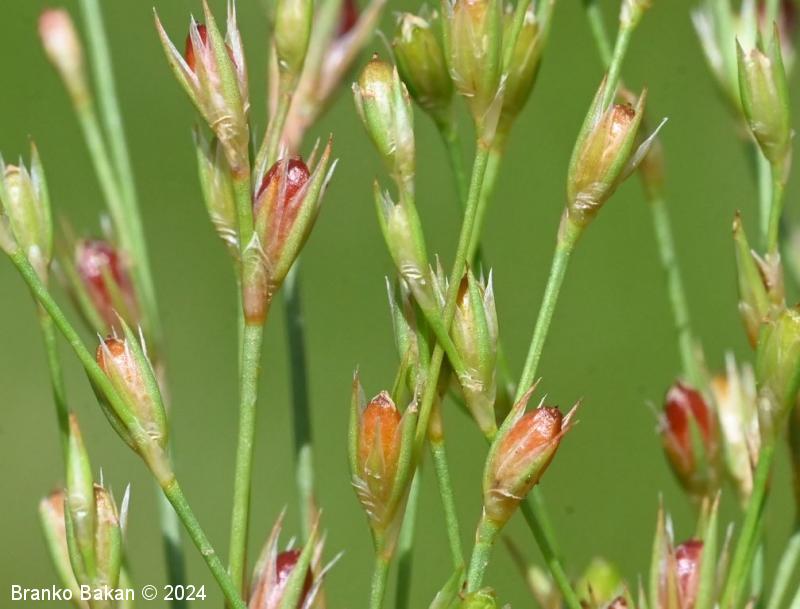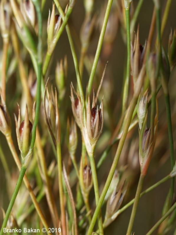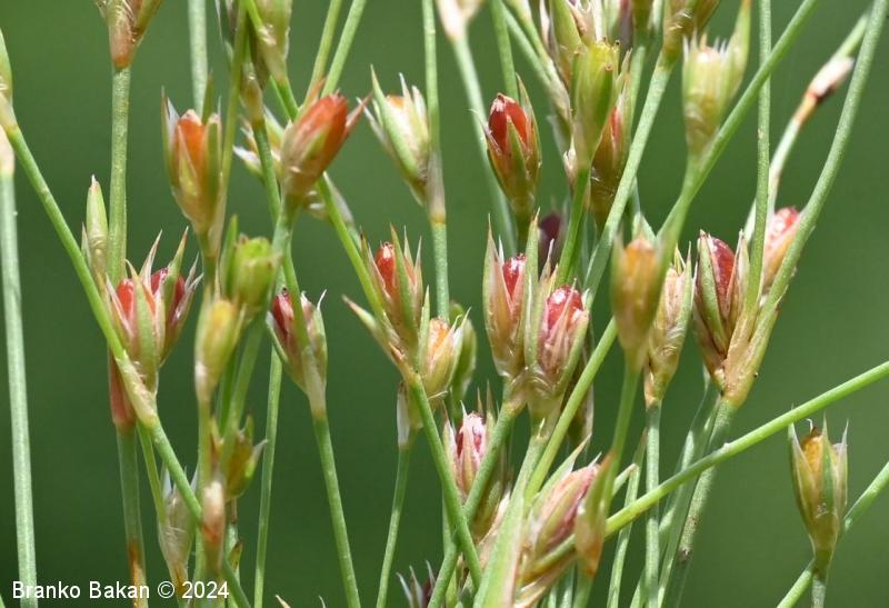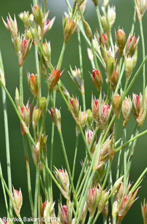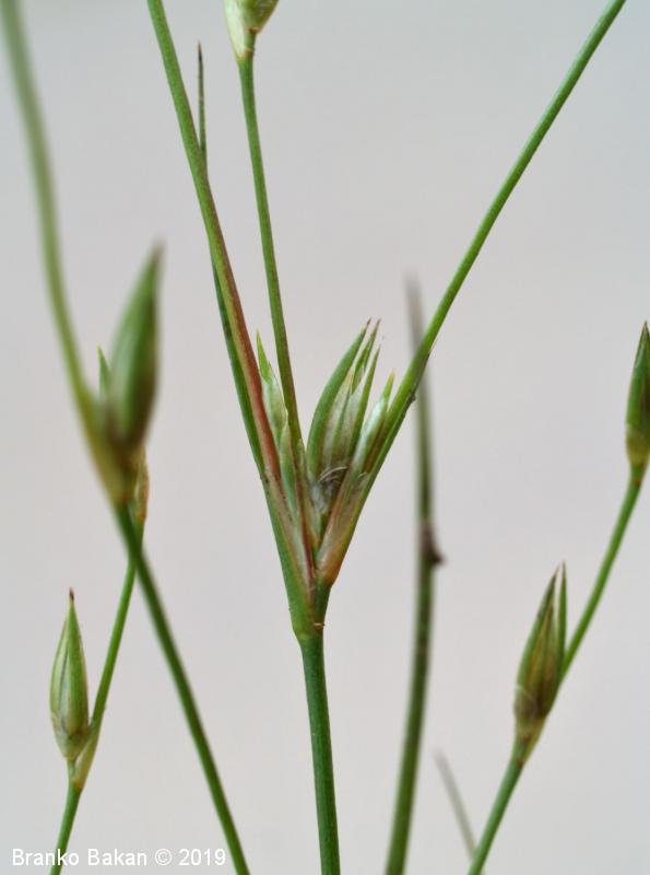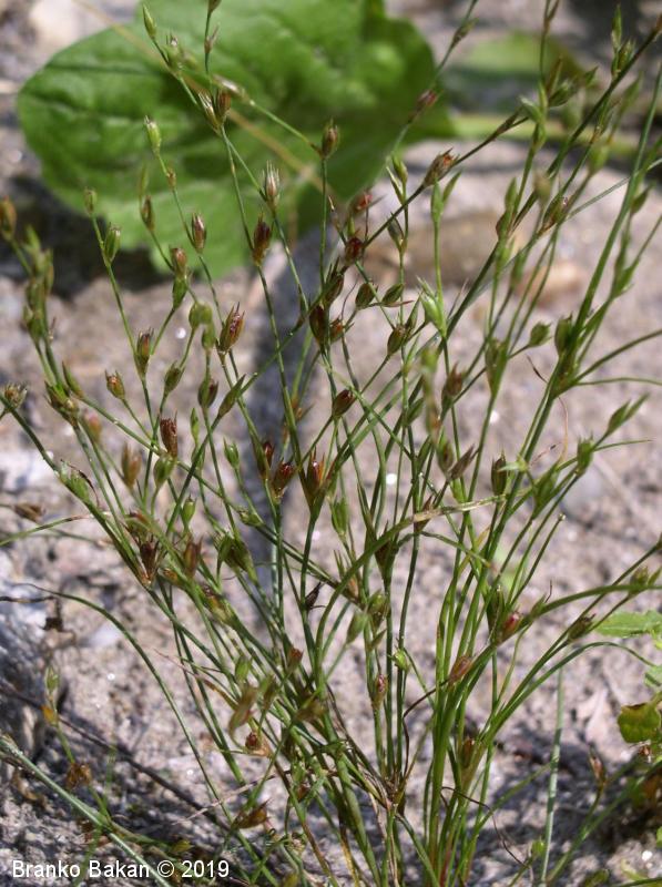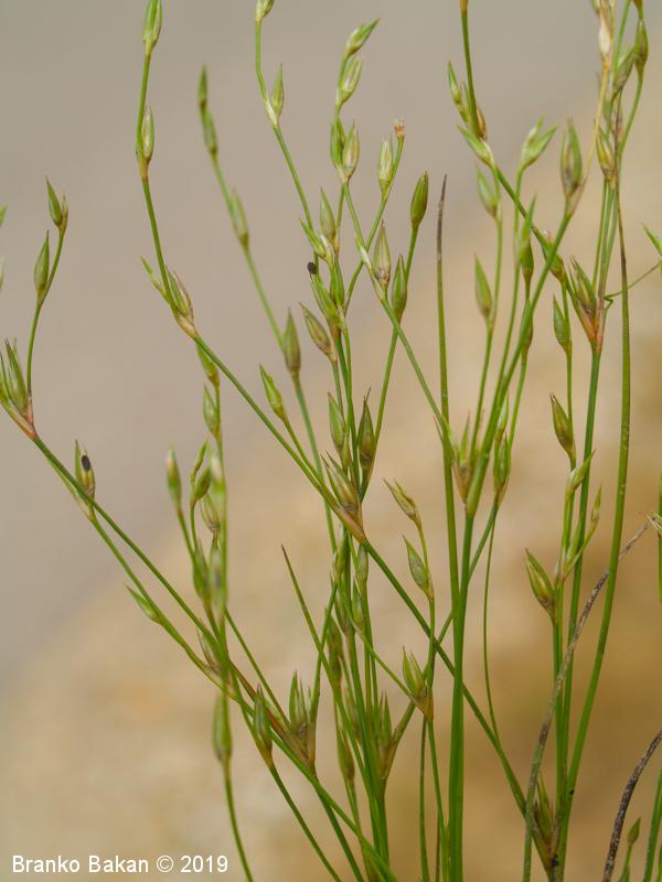 Opis: šopasto razrasla enoletnica. Steblo v prerezu okroglo, gladko, nekoliko bleščeče, olistano do vrha, zeleno ali rdečkasto. Listi togo štrleči, pri dnu podaljšani v listno nožnico, do 2 mm široki, v prerezu cevasti, v sredici s prečnimi pregradami, fino vzdolžno izbrazdani. Cvetovi posamični ali po 2-3 skupaj, pri dnu obdani z dvema jajčastima, kožnatima predlistoma. Perigonovih listov 5, šilasti, na vrhu priostreni ali včasih notranji listi na vrhu zaokroženi, navadno daljši od plodu. Plod je podolgasta glavica, na vrhu zaokrožen do rahlo koničast.