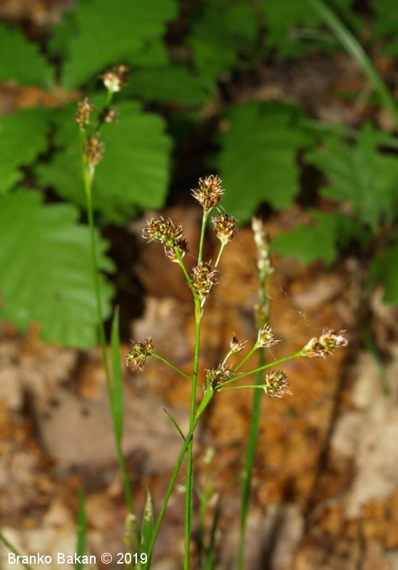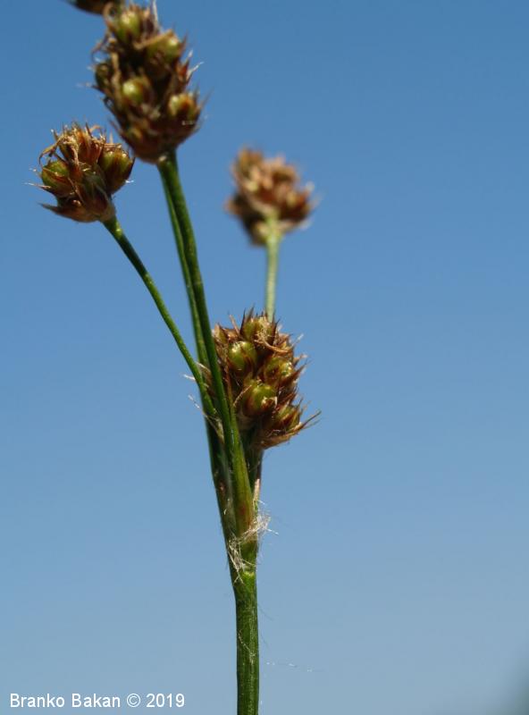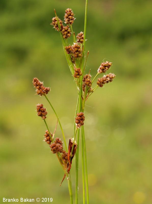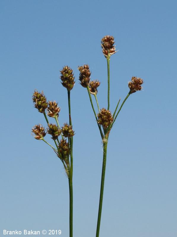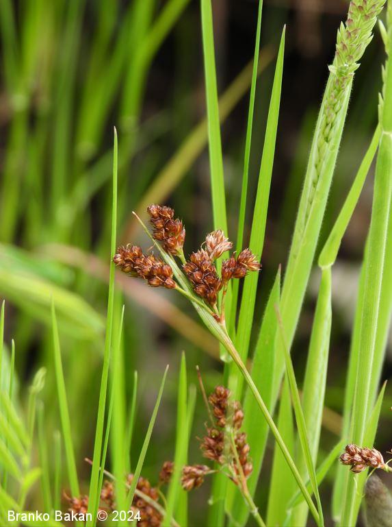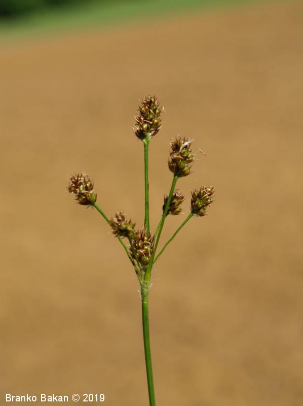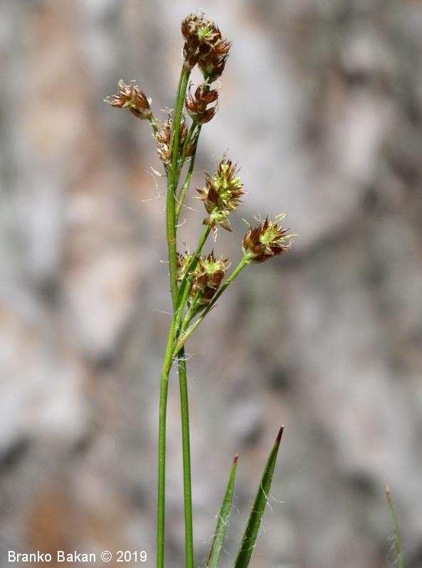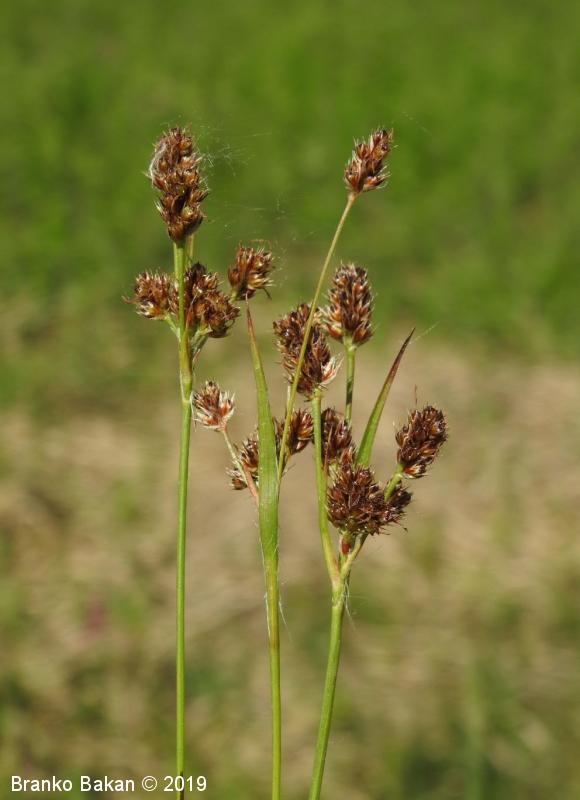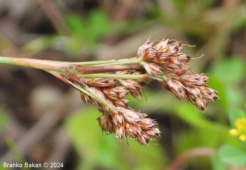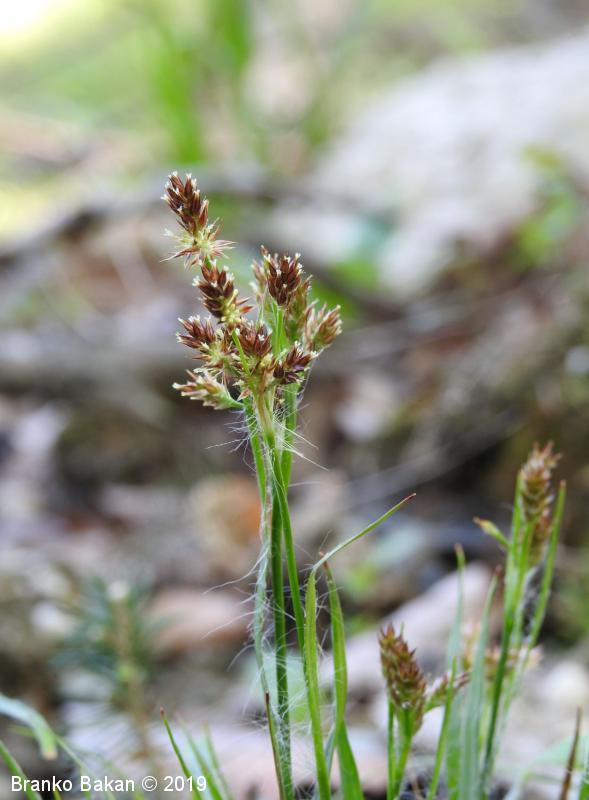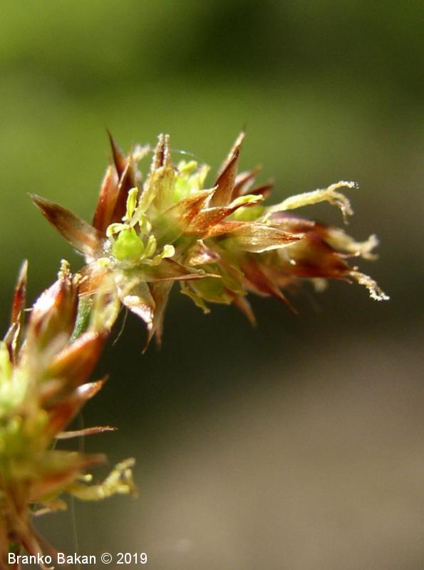 Opis: rušnato do šopasto razrasla trajnica brez pritlik. Steblo gosteje olistano pri dnu, proti vrhu navadno še 2-3 kratki listi. Listi šilasti, pokončni do mlahavi, po robu raztreseno dolgolasasti, šopi laskov tudi v zalistjih. Socvetje navidez kobulasto razraslo, ovršno. Cvetovi zgoščeni v gostocvetne, valjaste "klobke", ki so na različno dolgih pecljih (navadno ena klobka z zelo kratkim pecljem, ostale z zelo dolgimi), vse pokončne. Perigonovi listi šilasti, priostreni, rjavi, tako dolgi kot plod. Prašnične niti 1- do 2-krat daljše od prašnic. Plod je valjasta glavica.